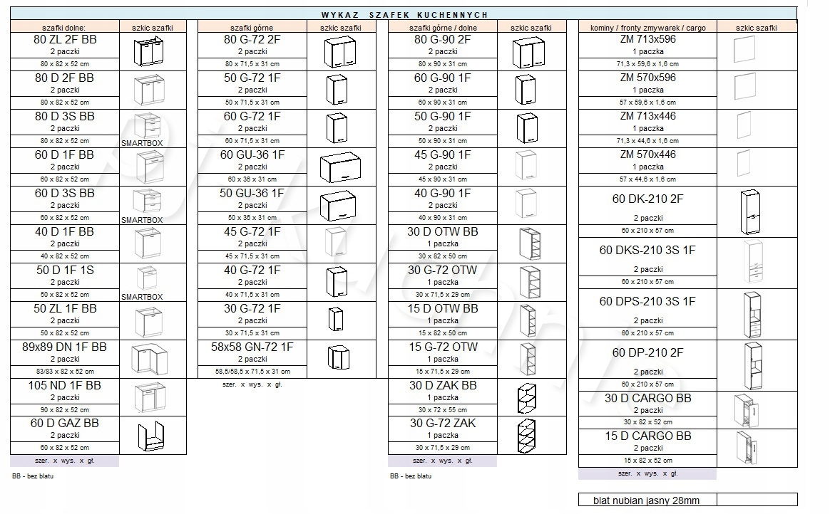 80ZL 2F BB; 80D 2F BB; 60D 3S BB; 40D 1F BB
