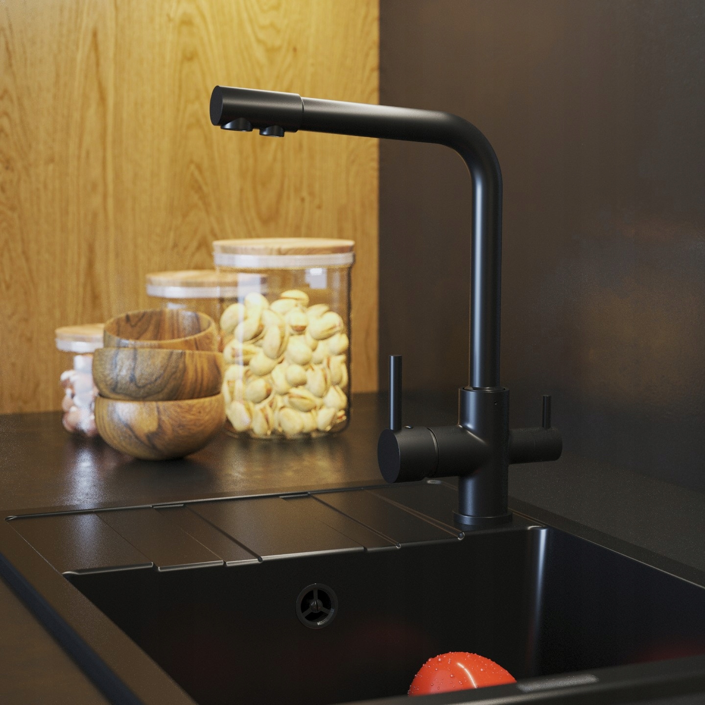 Кухонна акумулятор три -кран для фільтра води для кухонного чорного потоку