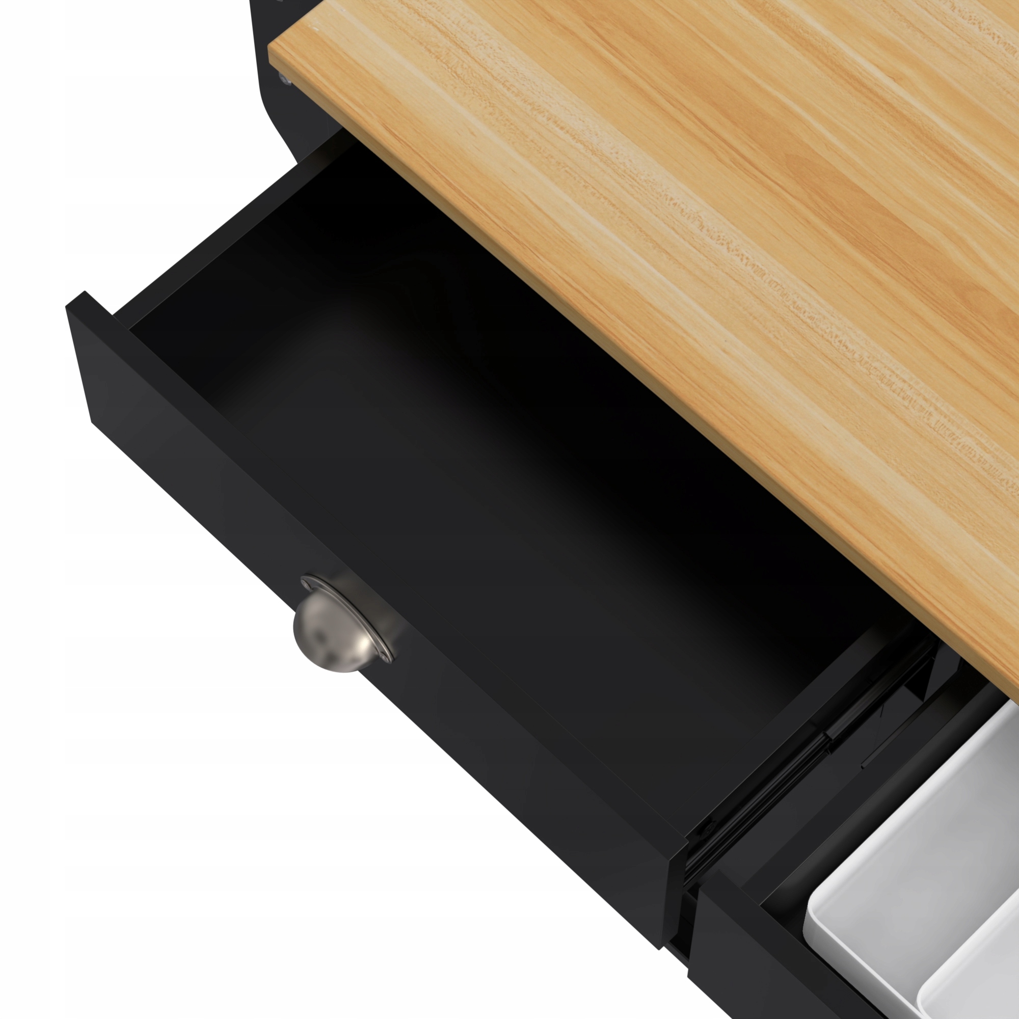 Два великих ящиків забезпечують багато місця для зберігання, а дві полиці з регульованими перегородками пропонують окремі місця для зберігання предметів різної висоти. Крім того, рушники стійки з обох боків допомагають підтримувати чистоту та порядок на кухні.