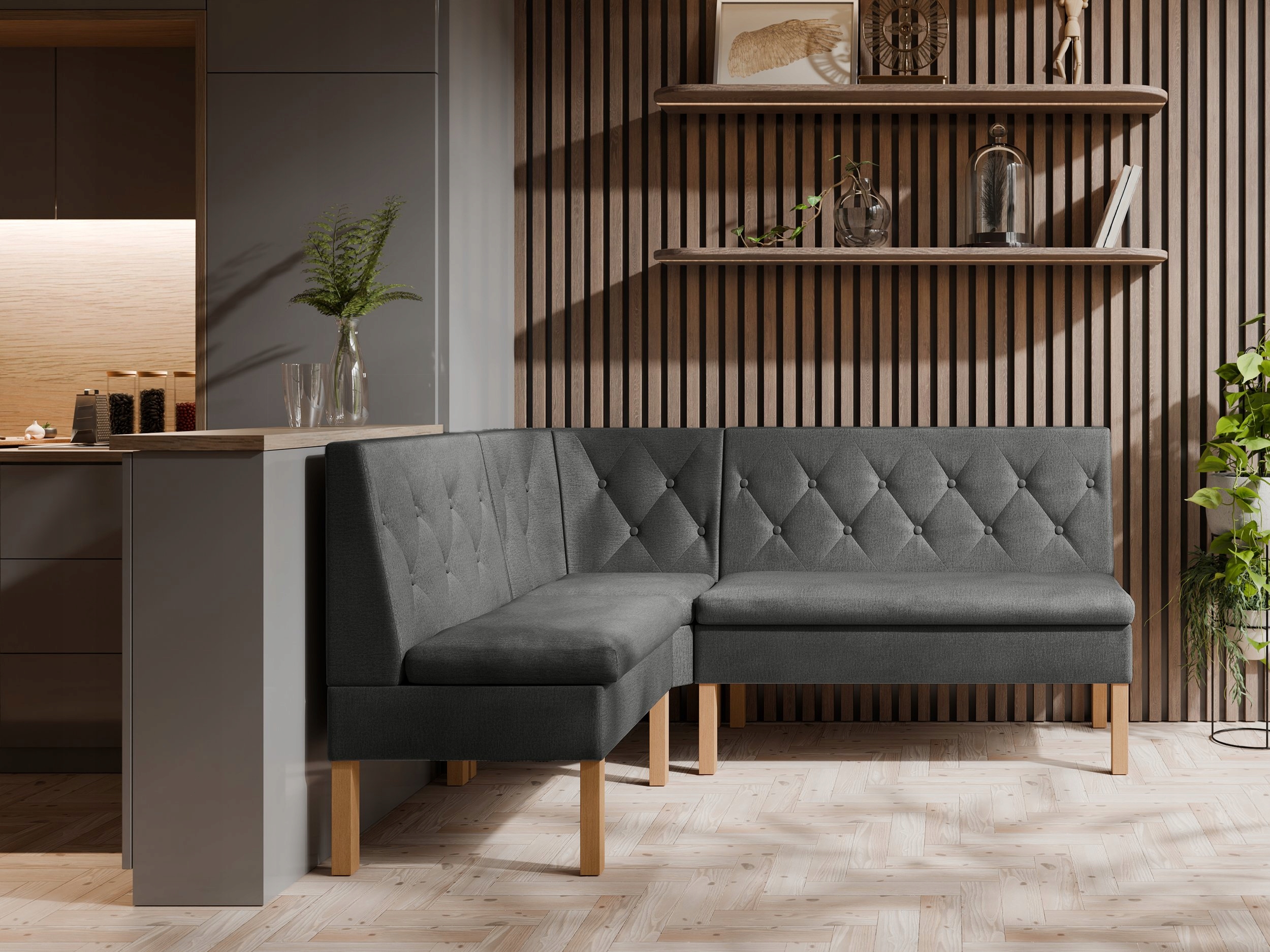 Сучасний кухонний куточок PRAGA поєднує в собі елегантність і комфорт. Ідеально підходить для кухні чи їдальні, виготовлено з високоякісних тканин - вибір кольору та розміру.