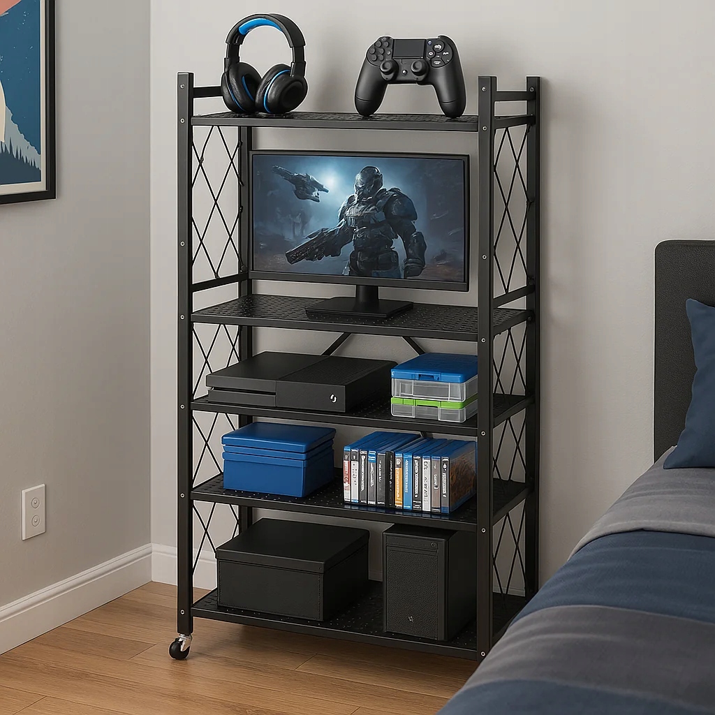 Кухонний склад стійки складання на горищних колесах 5 полиць чорний високий