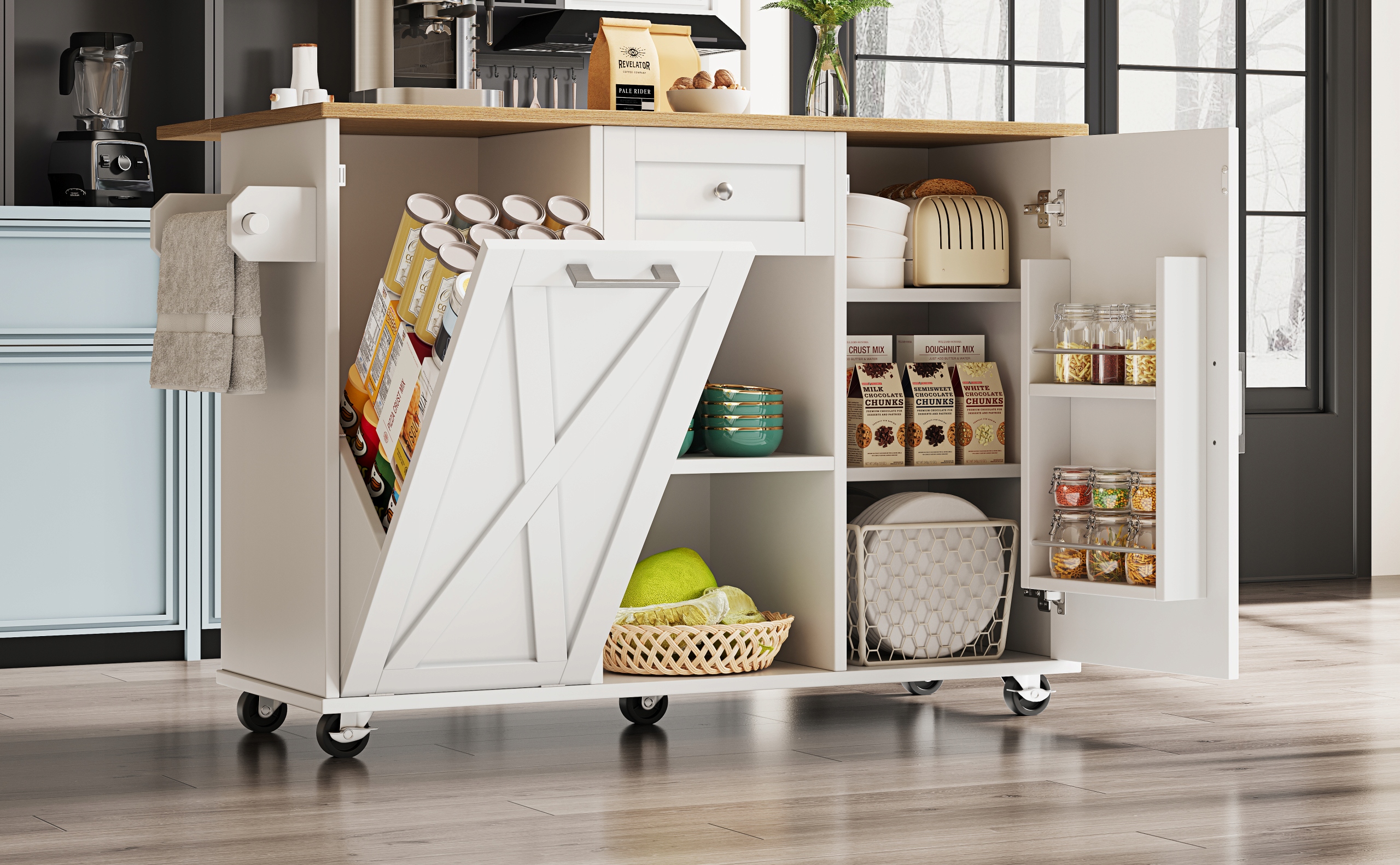Кухонний візок зі складеною верхом і двері з клаптям, мобільним кухонним островом