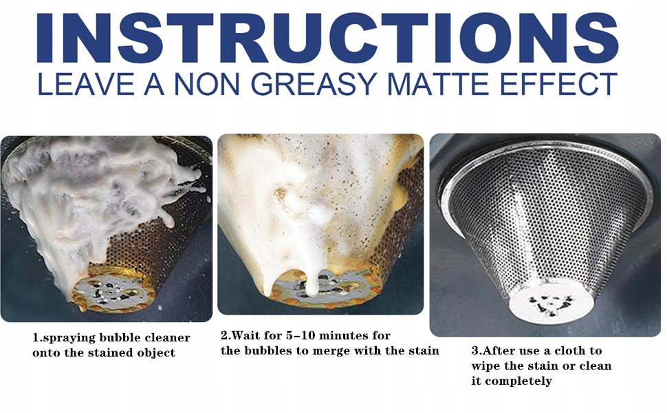 泡泡清洁剂可在 5 分钟内去除顽固污渍! 泡泡清洁剂的配方可在喷洒到脏物品上时渗透顽固的油脂和污垢. 等待 5-10 分钟,让气泡融化到污渍中,然后用布擦拭污渍或彻底清洁。厨房表面和厨具眨眼I маг: 通用集成泡沫清洁剂