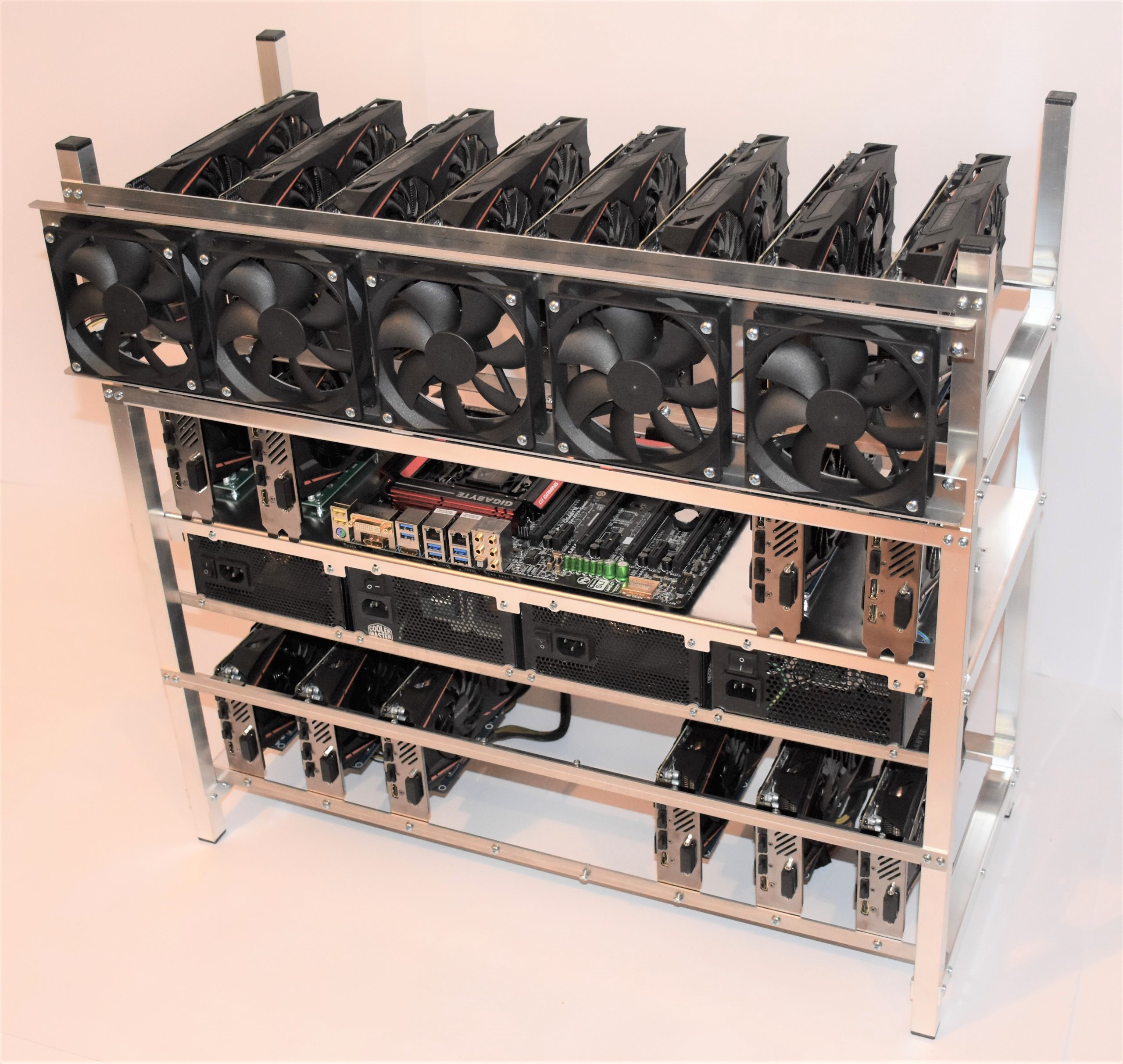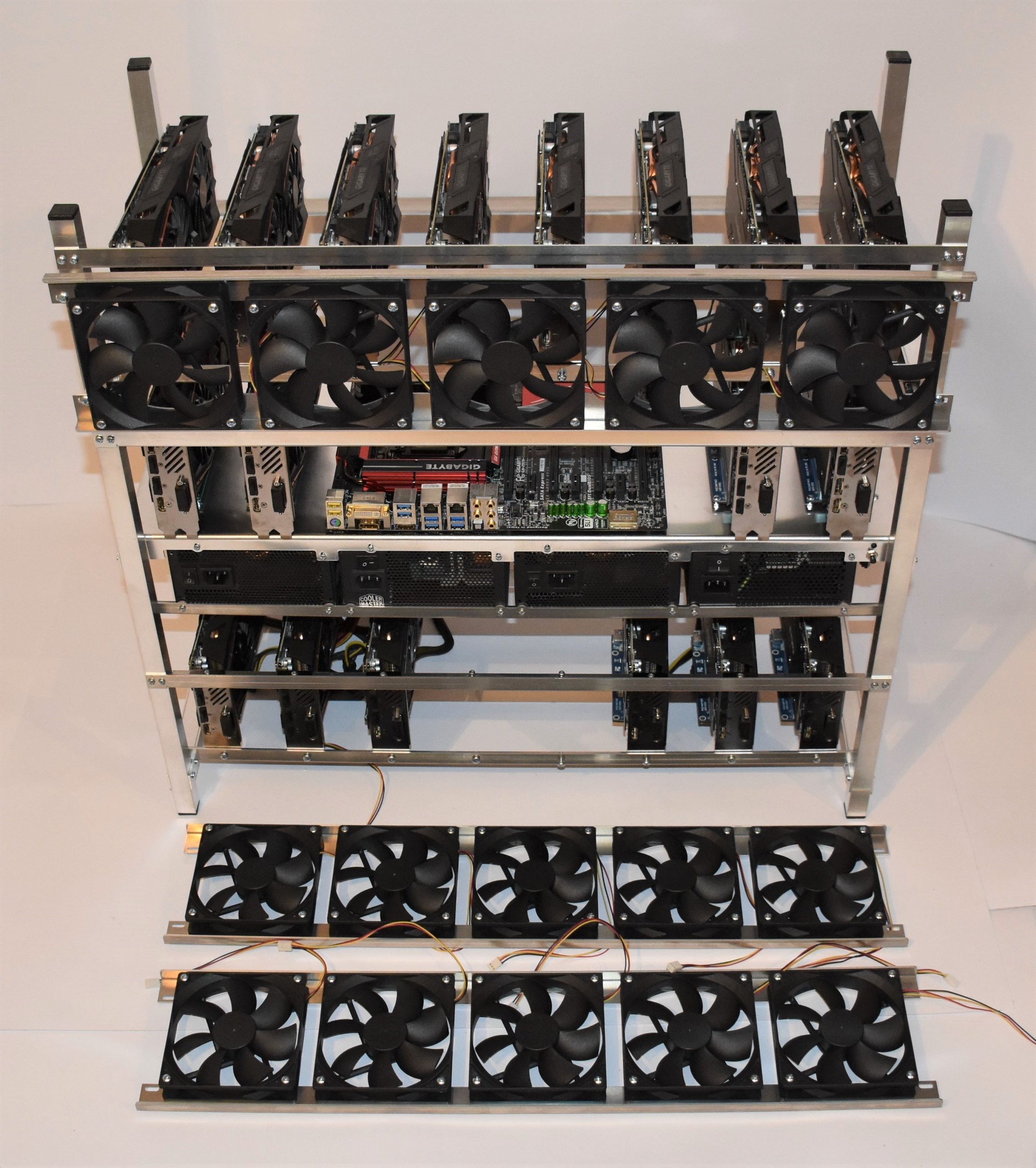 Три модулі вентиляторів, встановлені в корпусі для 20+2 відеокарт нашого виробництва. Пропоновані модулі вентиляторів також можна встановити в корпус ME8B.