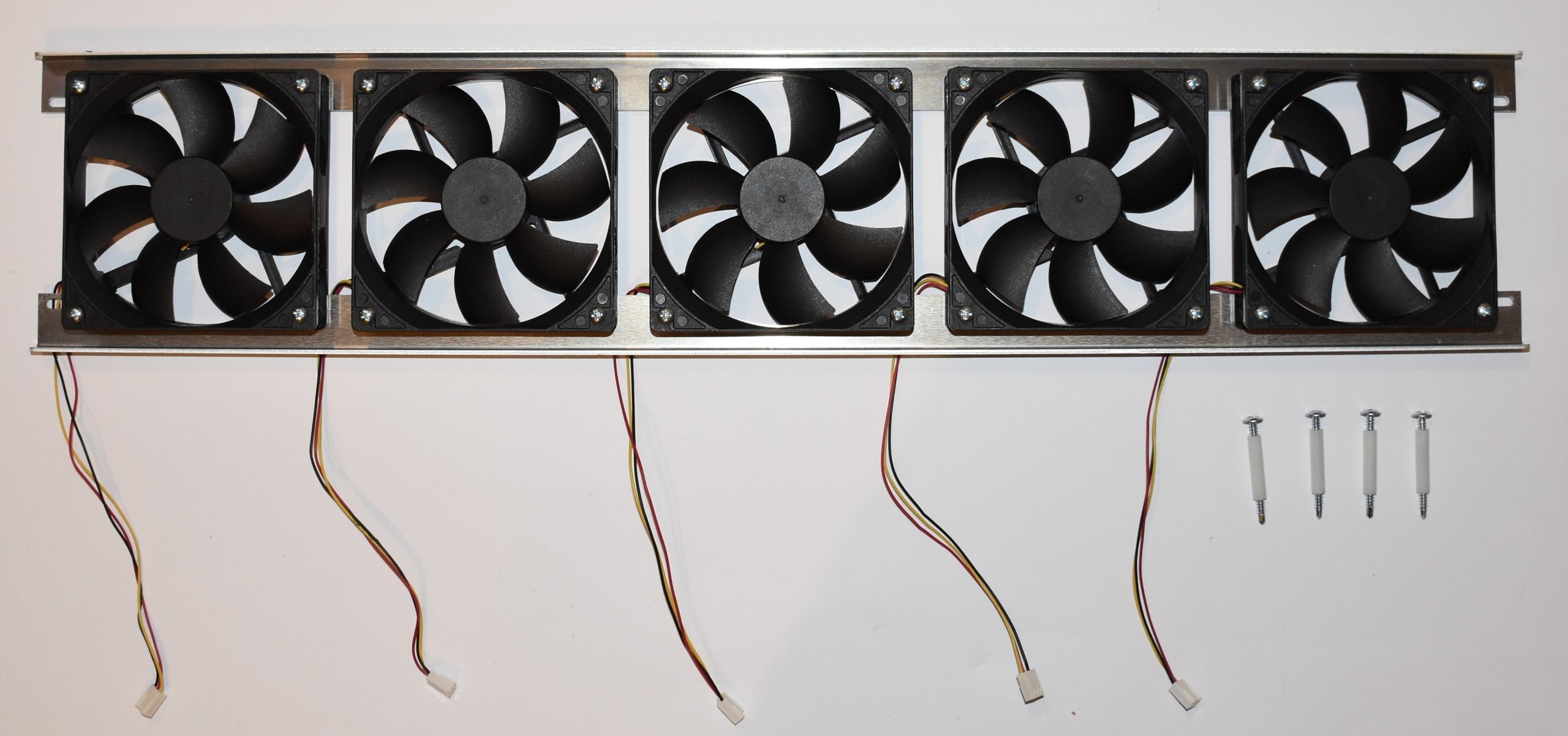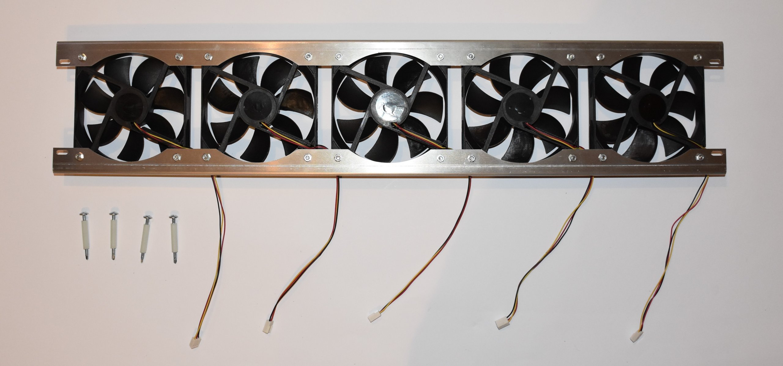 Ласкаво просимо на аукціон REFTRONIC. Предметом аукціону є вентиляторний модуль на 5 вентиляторів розміром 120мм х 120мм. У комплект входять всі елементи кріплення, необхідні для установки в корпус для 8 відеокарт - модель ME8B. У комплекті 20 гвинтів і гайок для кріплення вентиляторів, спеціальні розпірні втулки і 4 кріпильних гвинти для кріплення до корпусу. Корпус ME8B дозволяє встановити до двох таких вентиляторних модулів. Можлива передня і задня установка.
