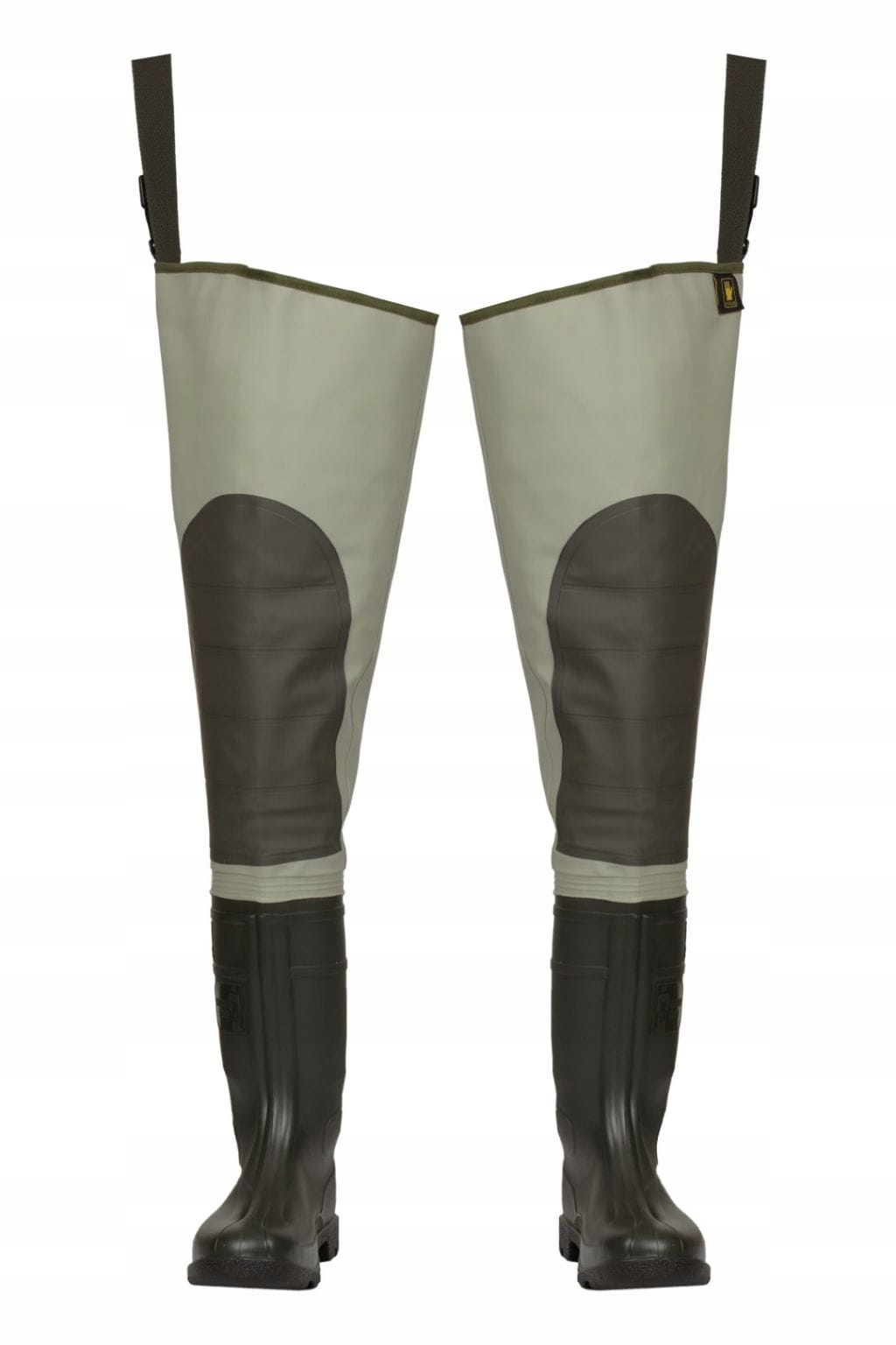 МІЦНІ ВИСОКІ РИБАЛЬСЬКІ ЧОБОТИ з постійним підігрівом башмаків і посиленими колінами. Дизайн довжиною до стегон з гумовими кріпленнями для підтримки. Зручне кріплення на поясі брюк. Доступні в кольорах: світло-оливковий в розмірах від 39 до 48.