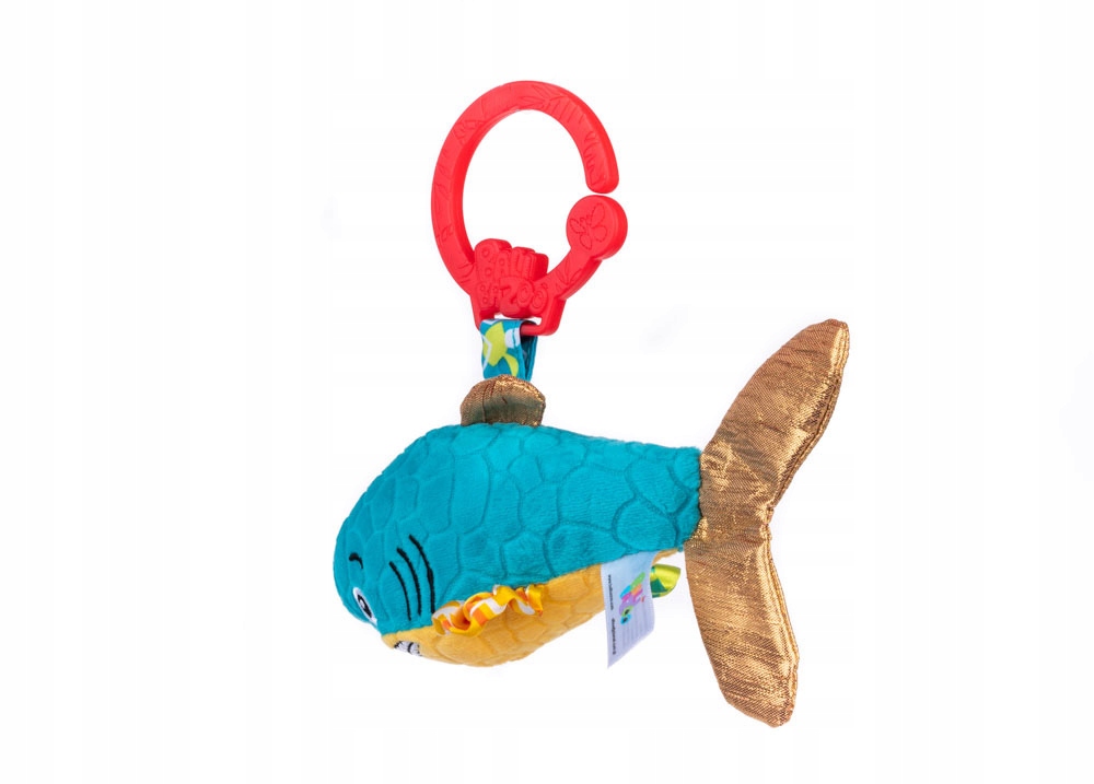 Цей хлопець лише здається небезпечним! Насправді це ніжна рибка, яка кумедно пищить при підкиданні. Акула має золотистий шурхотливий хвіст і виготовлена з матеріалів з різними текстурами, щоб стимулювати розвиток дотику дитини. Практична пряжка полегшує кріплення іграшки в обраному місці.