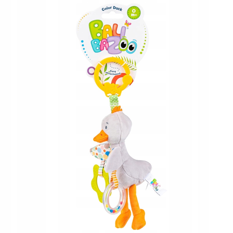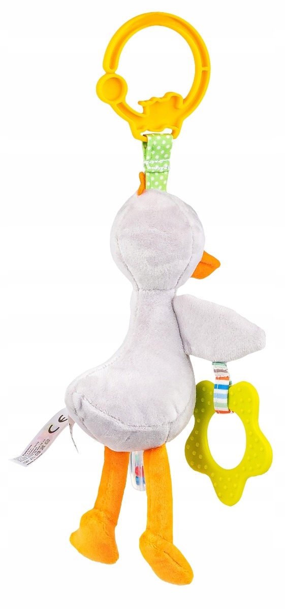 ✅ Крила качки прикрашені двома додатковими іграшками: teether з вистуками та колом для побиття , наповненим барвистими кульками.
