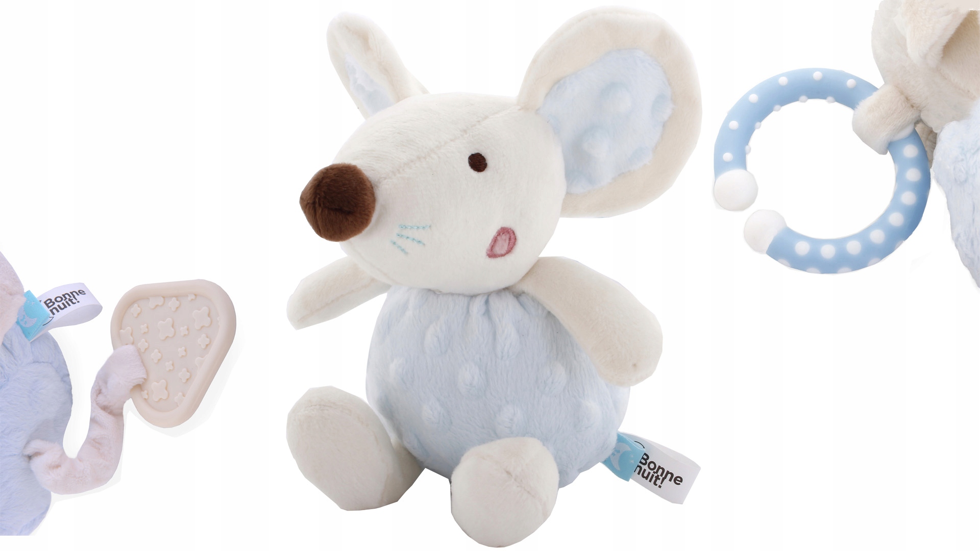 Дуже гарна мишка, яка завдяки прихованій музичній скриньці заколисуватиме вашу дитину з моменту народження. Спеціально розроблені стрічки та вузли стимулюватимуть уяву вашого малюка. Цей милий друг має спеціальну гнучку ручку, за допомогою якої його можна прикріпити до ліжка, коляски чи автокрісла.