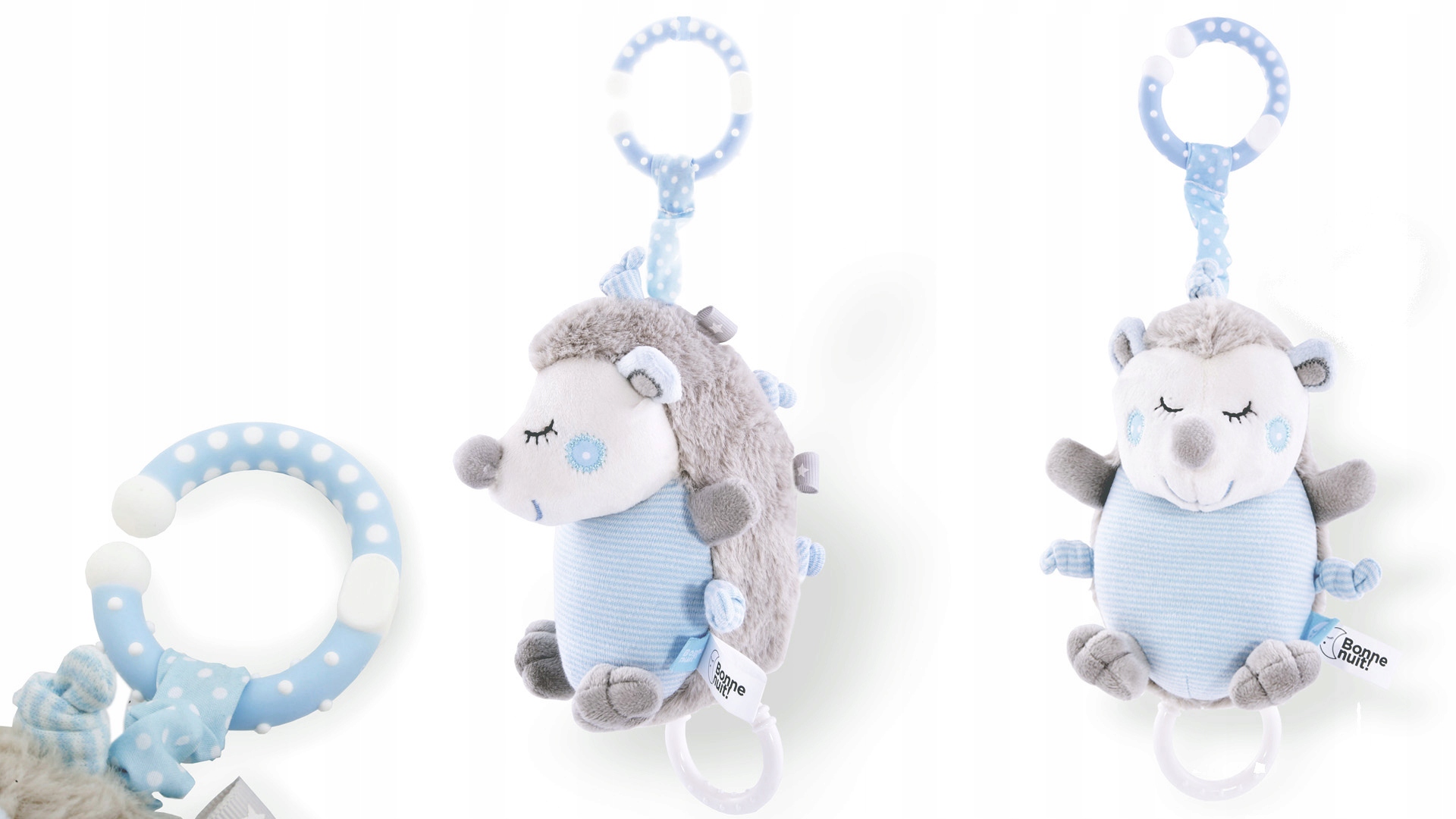 Милий Їжачок, який завдяки прихованій музичній скриньці заколисатиме вашу дитину з моменту народження. Спеціально розроблені стрічки та вузли стимулюватимуть уяву вашого малюка. Цей милий друг має спеціальну гнучку ручку, за допомогою якої його можна прикріпити до ліжка, коляски чи автокрісла.