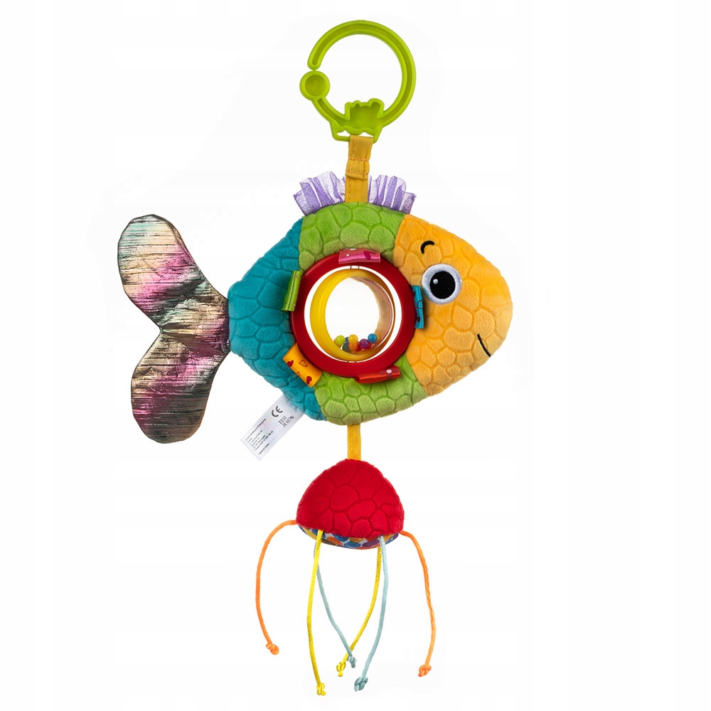 Голді — це товариська рибка з шурхотливим хвостом, і вона нікуди не ходить без свого друга восьминога, з яким вона любить гратися та тріскатися. У рибки є чарівна кулька. Коли дитина використовує її, вона буде крутитися і приводити в рух різнокольорові, брязкаючі намистини всередині нього! Рибка також має бірки з різними текстурами, які допоможуть найменшим дітям розвивати пізнавальні навички. Практична пряжка дозволяє прикріпити кулон у вибраному місці.