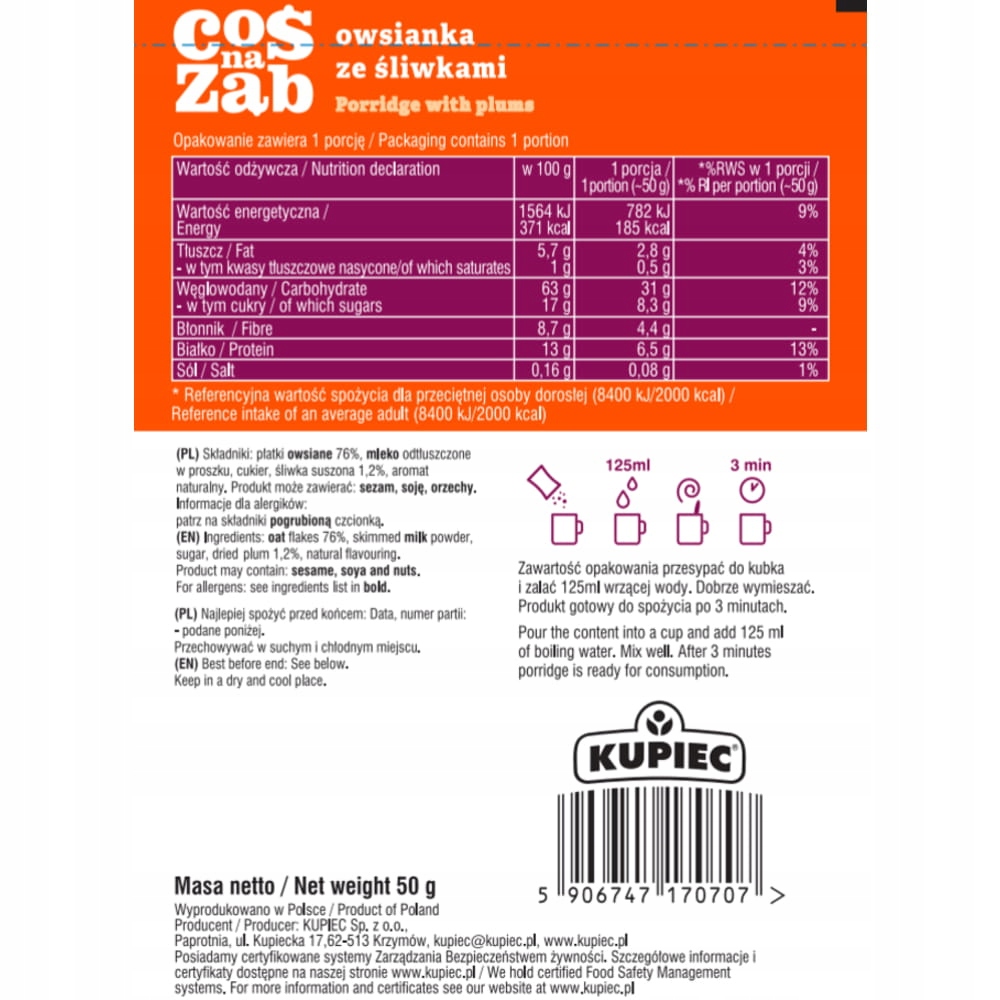 Kupiec ЩОСЬ НА ЗУБ - POORTIME ЗІ СЛИВАМИ 50г готове за 3 хвилини x5