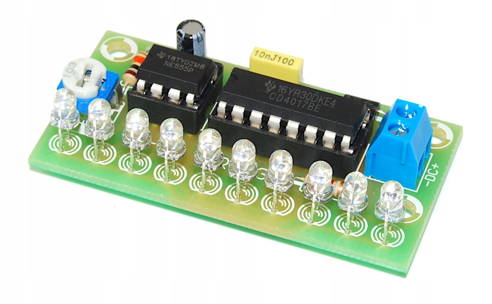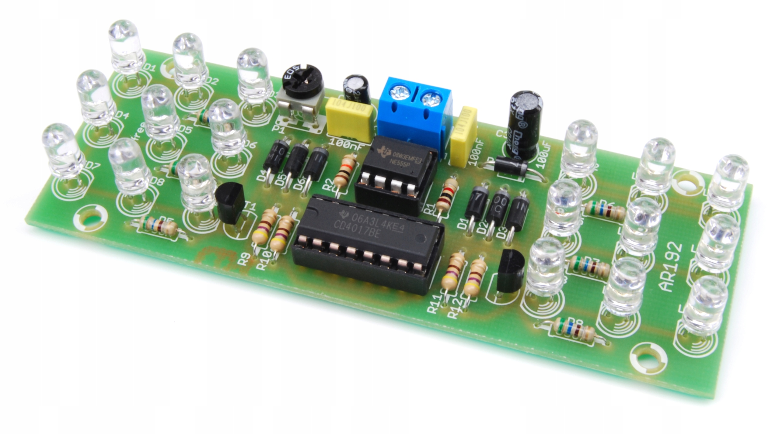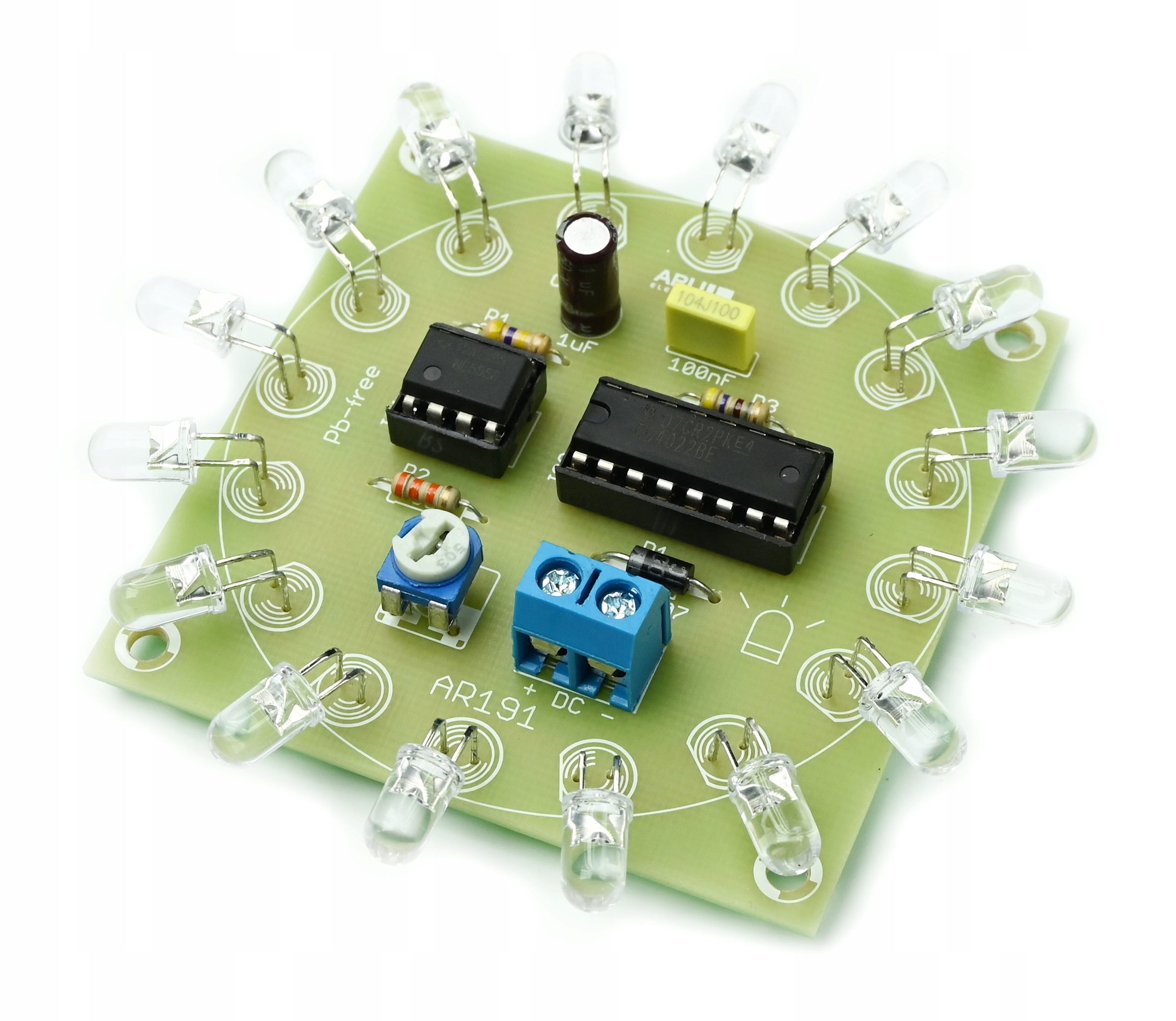 - AR193 - Світлодіодний світлодіодний ліхтар для бігу - дуже цікавий світлодіод світловий ефект. Він відомий як «переслідувач», «падаючий метеорит», «біжний вогонь» або «лицар-вершник». Його можна використовувати для розваги, в моделях транспортних засобів, як рекламний елемент, як сигнальну лампу або як гаджет на дискотеці. Швидкість ефекту можна регулювати