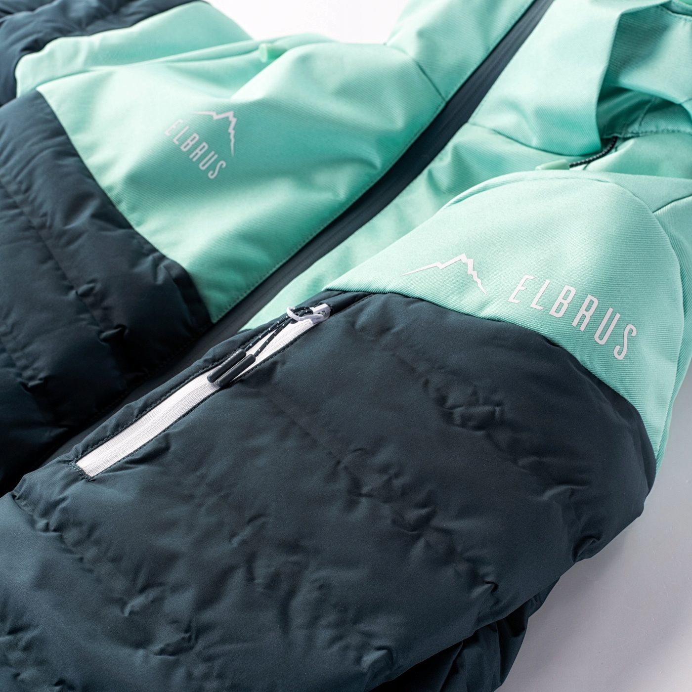 Жіноча гірськолижна куртка Ельбрус. Забезпечує захист від снігу та дощу завдяки використанню двошарової мембрани з водонепроникністю 10 000 мм H2O Куртка витримує тиск водяного стовпа 10 000 мм, що діє на 1 м² матеріалу. Ще однією перевагою зимової куртки Ельбрус є її вітрозахисність, яка поєднується з високим коефіцієнтом повітропроникності 10 000 г/м². Куртка оснащена: >бічними кишенями, кишенею для лижного абонементу. і вентиляційні отвори. високий комір-стійка на блискавці оброблений клапаном, що захищає підборіддя. Куртка має знімний капюшон з регулюванням по бокам і сніжну спідницю, яка ідеально підходить під час сильного дощу та можливих падінь у сніг. Покриття DWR - це вид спеціального, дуже міцного просочення тканини, що підвищує поверхневий натяг матеріалу, головним завданням якого є забезпечення високого ступеня водостійкості. Куртка з міцного поліестеру забезпечить тривалий період використання, а наповнювач чудово зберігає тепло користувача. Все це закріплено проклеєними швами, що підвищує захист від води. Додаткові особливості цього лижного спорядження включають отвори для великих пальців і водонепроникні блискавки.