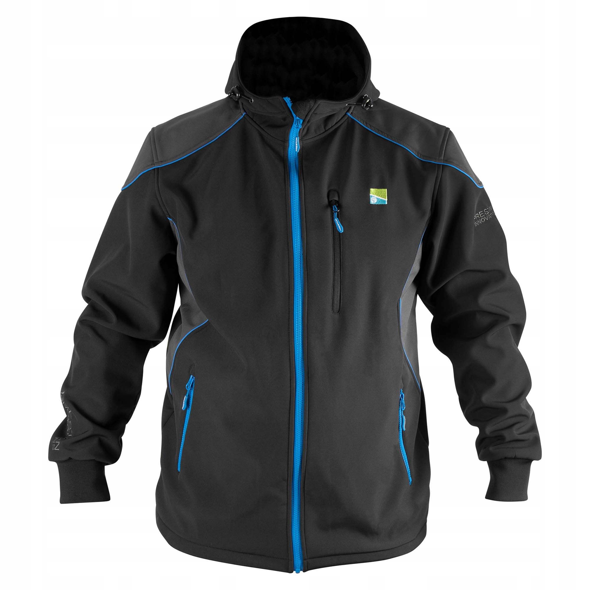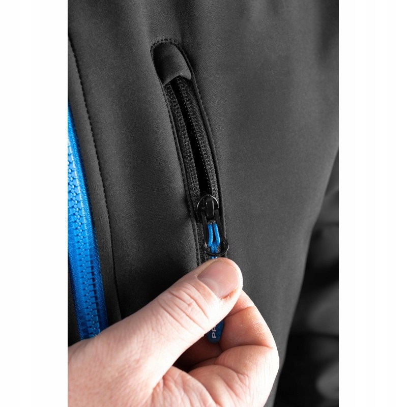 Куртка Preston Soft Shell є ідеальним покриттям для холодних днів, де вона забезпечує фантастичний захист від вітру та холоду, а також водонепроникність. Має еластичні манжети та три кишені на блискавці, ідеально підходить для зберігання телефону, ключів та інших цінностей. Регульований капюшон захищає від вітру і невеликого дощу, які можуть випасти на риболовлю. Матеріал Soft Shell м’який і зручний, що робить його ідеальним для носіння окремо або під водонепроникним костюмом у дощовий день.