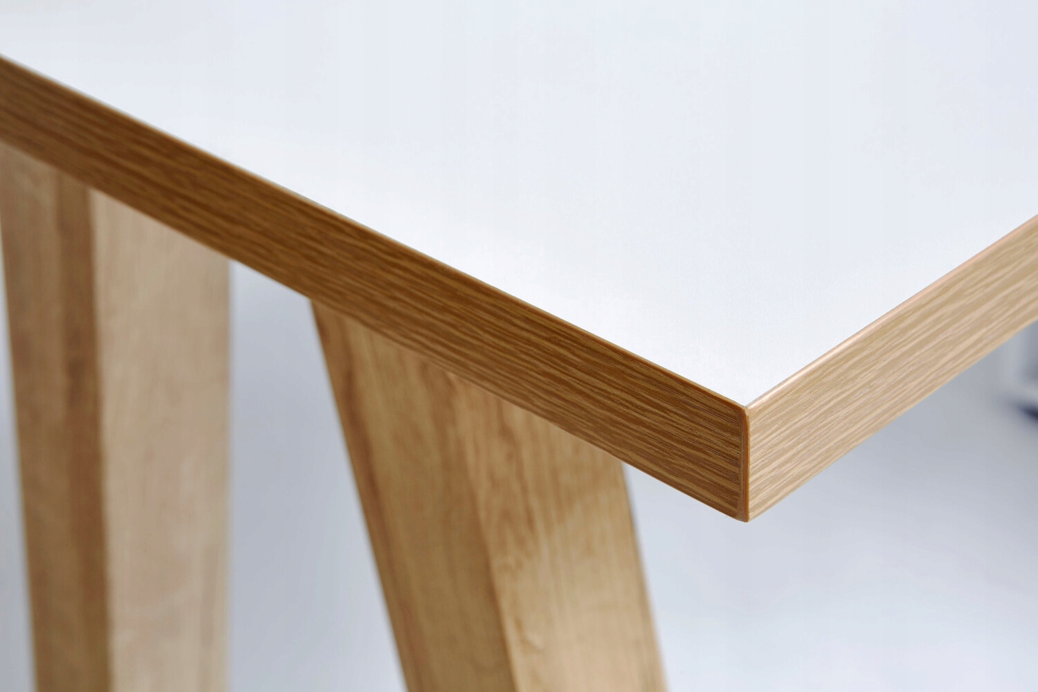 - це кутовий стіл з розмірами 140x110x76 см, що ідеально підходить для використання сучасного дизайну. Білий верх, виготовлений з високоякісної деревини, міцний і стійкий до подряпин, що забезпечує комфорт під час повсякденного використання. Його простий, мінімалістичний зовнішній вигляд ідеально вписується в сучасні композиції, а природні дерев’яні елементи приносять до інтер’єру затишні та елегантні акценти.
