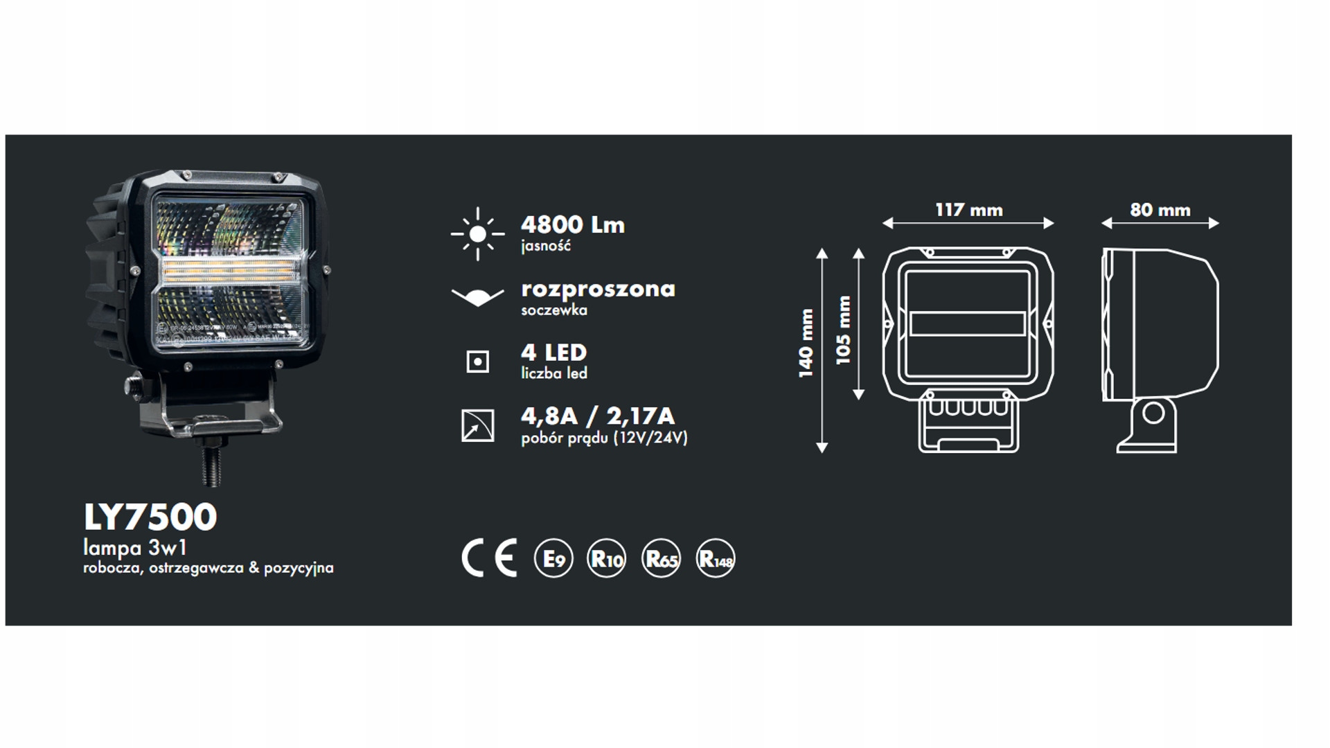 - споживаний струм: 4,8A/2,17A [12/24V]