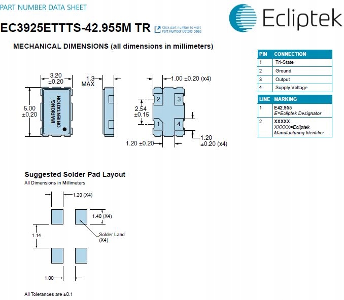 Кварцовий генератор 42,955 МГц 5x3 мм SMD