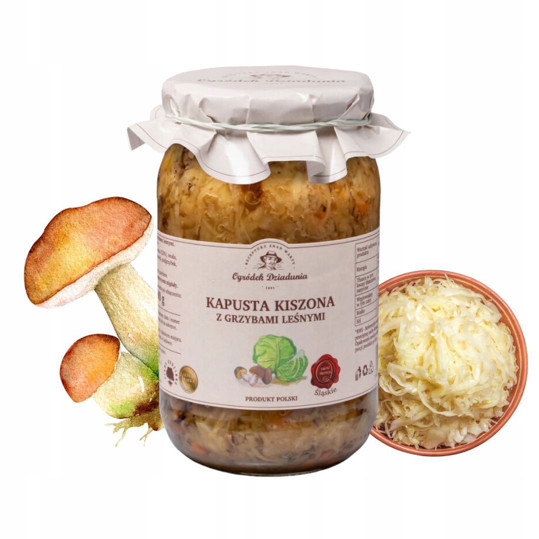 4 Унікальна квашена капуста на ринку з додаванням реальних лісових грибів, таких як гриби свинячих, грибів та козлів. Зібрані в чистих лісах ландшафтного парку Залзаньського.Аналогічно, як і в нашій родині: постріл, солоний і змішаний з подрібненою цибулею та грибами. Чекаючи добре збитими, поки вона не стане особливим смаком. Не поспішаючи, жодного оцту чи інших додавань -on. Як це було раніше.