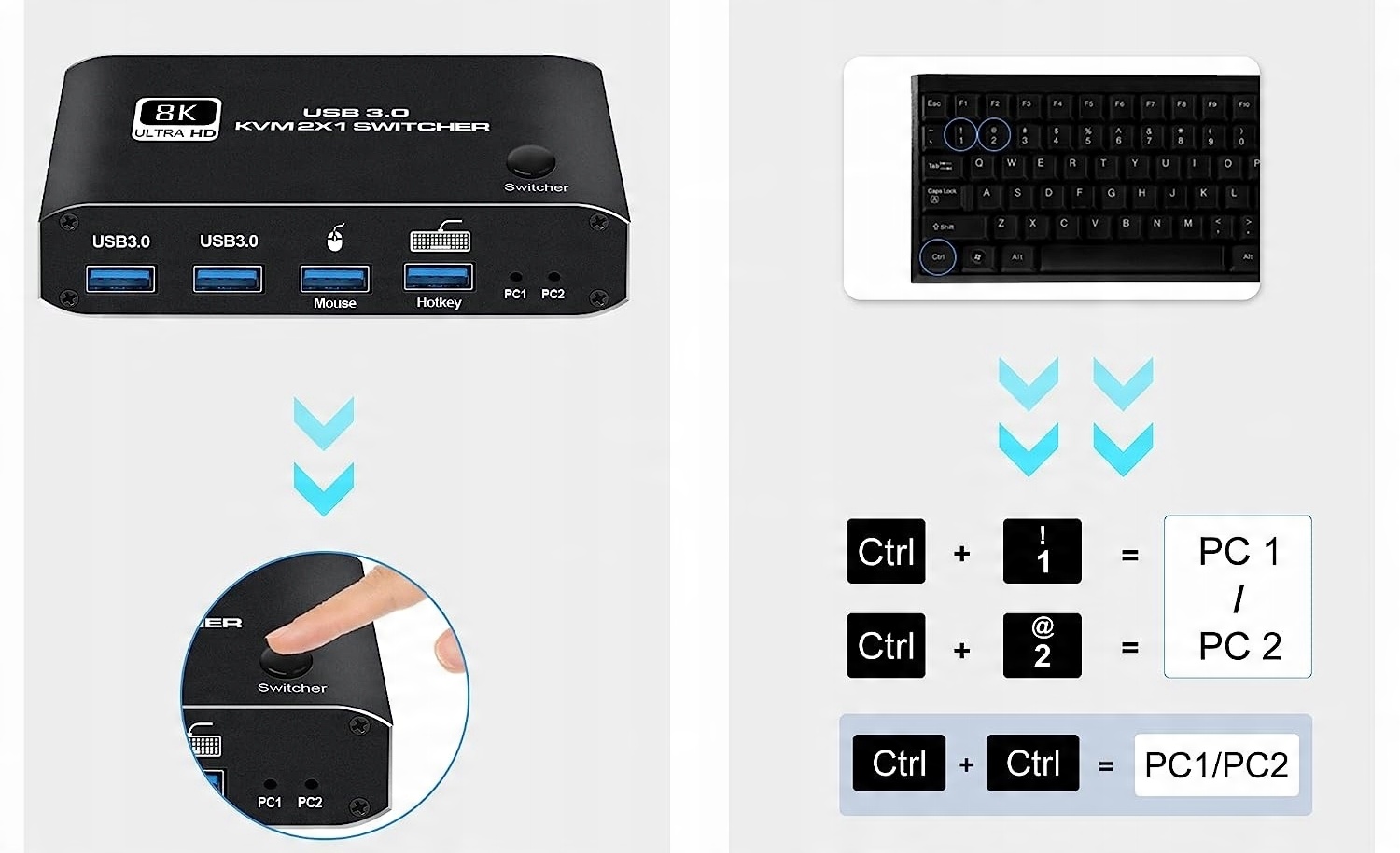 Завдяки наведеним вище характеристикам наші перемикачі KVM забезпечують надійне з’єднання та високу якість відео та аудіо. Вони прості у використанні та дозволяють плавно перемикатися між пристроями.
