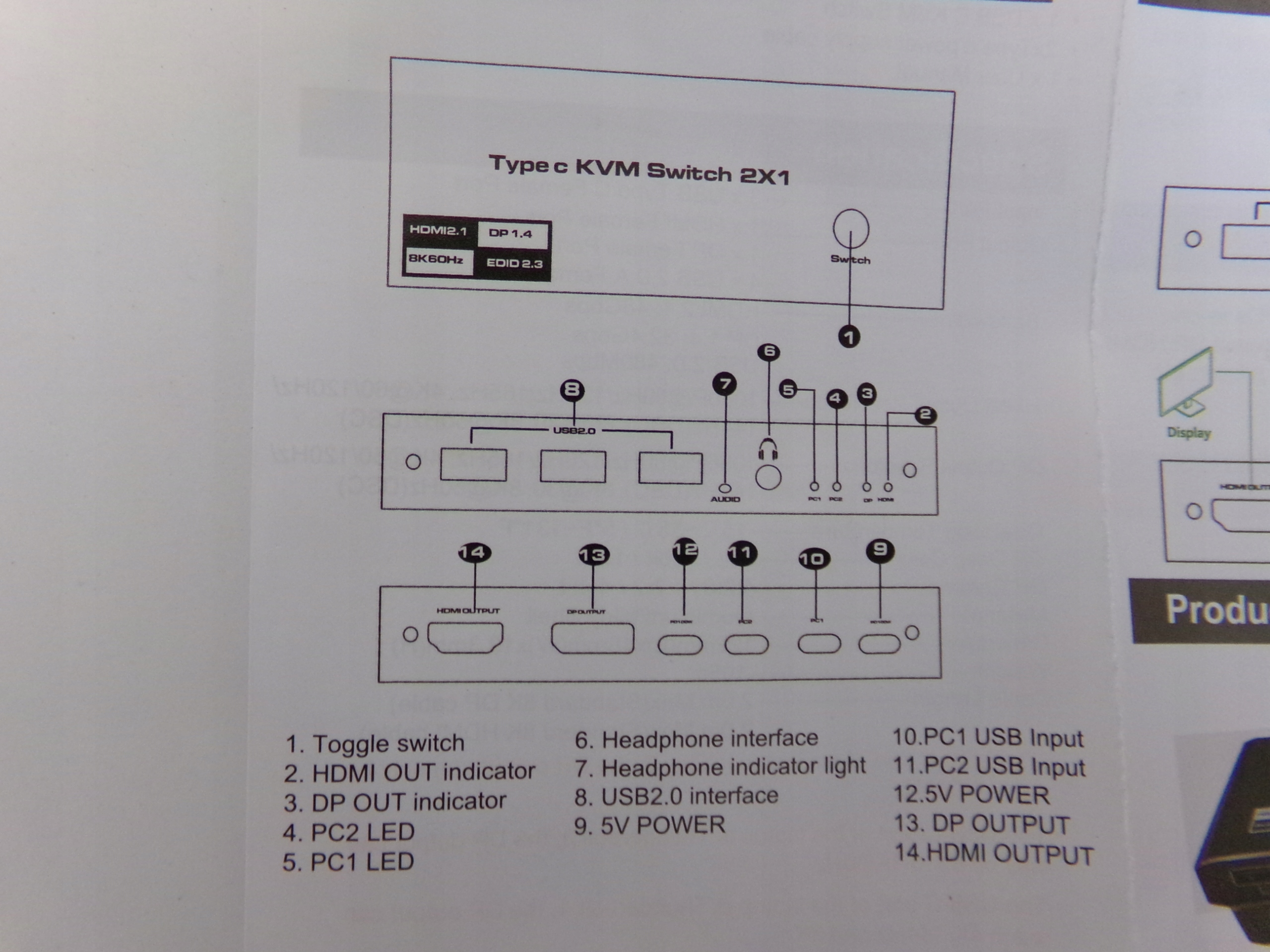 Перемикач KVM INF дозволяє підключати два комп'ютери USB-C/Thunderbolt до одного монітора (8k@60 Гц або 4K@120 Гц) та обмін Три пристрої USB 2.0 (клавіатура, миша, принтер). Завдяки PD 100 Вт живлення (доставка живлення USB-C), комп'ютери залишаються зарядженими під час роботи. Перемикання між джерелами відбувається фізичною кнопкою . Компактний корпус алюмінію (12 х 6 х 2 см) забезпечує довговічність, а підключення та гра працює з Windows та MacOS без встановлення контролерів.