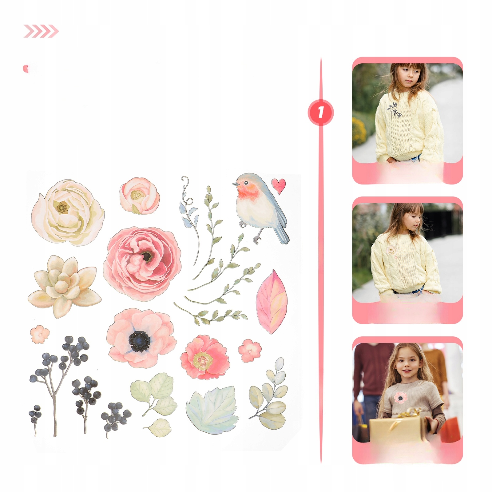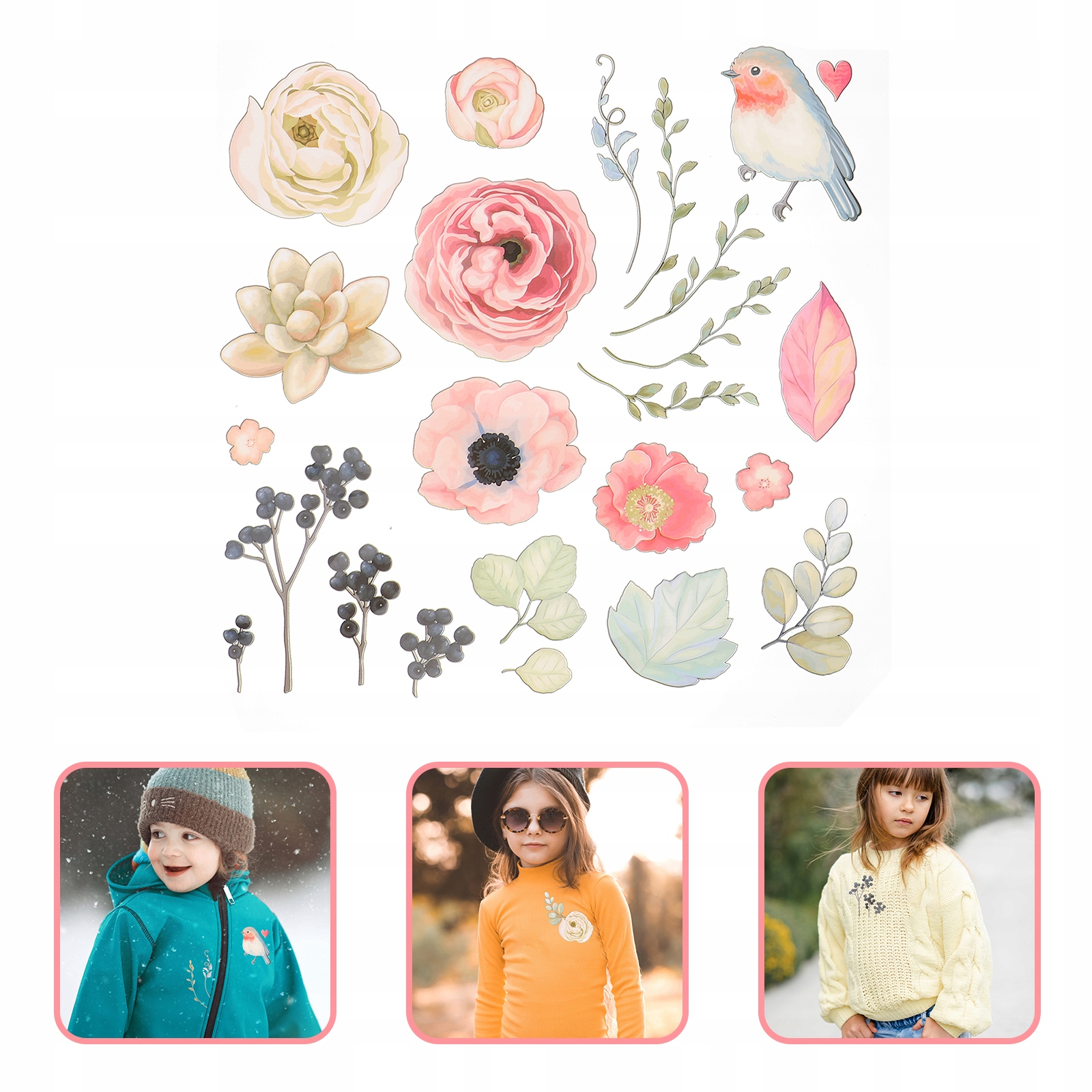 KWIATY I PTAKI IRON ON NAKLEJKI DO ODZIEŻ DO PRZYLEPIANIA