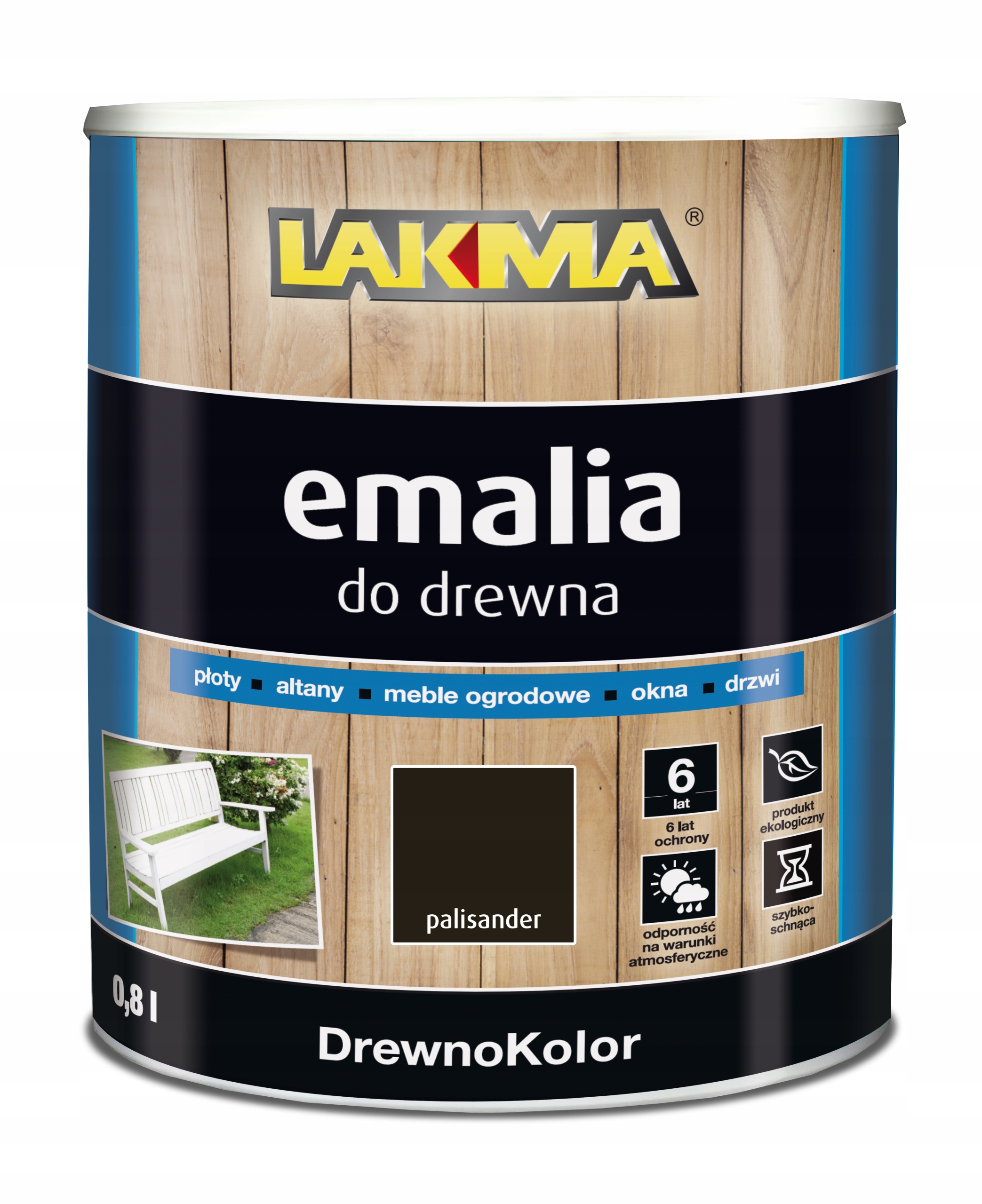 Емаль для дерева Lakma DREWNOKOLOR - захисно-декоративна просочення для фарбування деревини та матеріалів на її основі. Завдяки вмісту акрил-алкілової дисперсії створює гладке, швидковисихаюче, еластичне, тверде та естетичне покриття, яке також є стійким до прилипання. Захищає деревину та матеріали на основі деревини від погодних умов, ультрафіолетового випромінювання, м’яких засобів для чищення та вологи. Емаль для дерева Lakma DREWNOKOLOR підходить для фарбування дерев'яних, дерев'яних, мінеральних поверхонь, гіпсокартонних плит, а також шпалер як всередині, так і зовні приміщень. Особливо рекомендується для використання в школах, дитячих садках, дитячих садках і лікарнях.