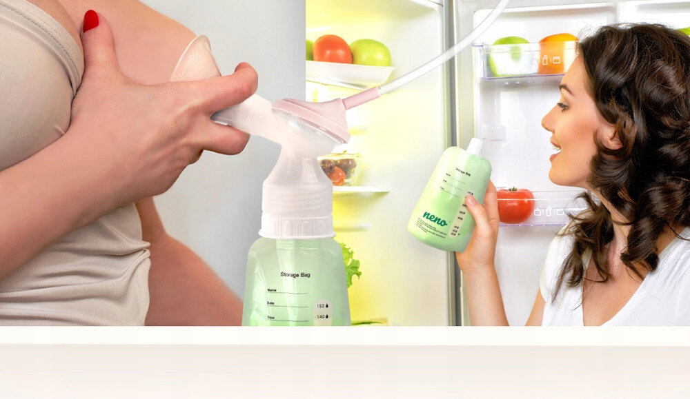 Якщо у вас занадто багато зцідженого молока, ви можете заморозити його та використати пізніше. Використовуйте для цього пакети для зберігання молока NENO, які завдяки точному конектору можна приєднати безпосередньо до молоковідсмоктувача NENO замість пляшечки.