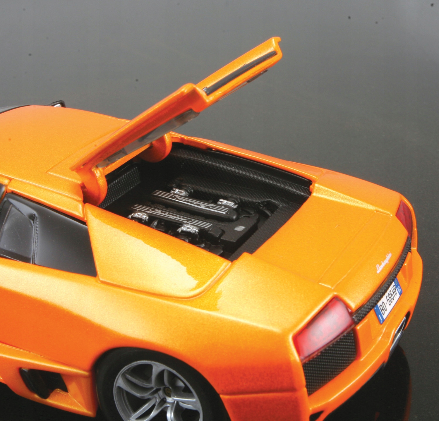 Модель для складання в масштабі 1/24 (клей не потрібен, викрутка входить). Має рухомі елементи, відкриваються двері та кришку двигуна, пофарбований металевий кузов, гумові колеса та два комплекти ободів (глянсовий сріблястий та матовий сріблястий). Після складання ми отримуємо повністю справний, рухомий автомобіль, ідеальний як іграшка для дитини або модель для колекціонера. Модель має відкриваються двері та кришку двигуна