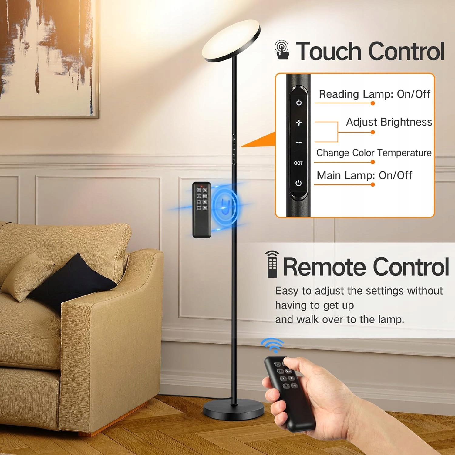 - Дистанційне управління та дотик : Сучасна стояча лампа оснащена пультом дистанційного керування та дотику, щоб керувати двома лампами незалежно один від одного. Завдяки практичному пульту дистанційного керування ви можете легко відрегулювати налаштування, не вставаючи та входити в лампу. Завдяки практичному дотику контролю ви можете легко встановити освітлення, і вам більше не доведеться турбуватися про те, щоб підвісити кабелі на лампі.