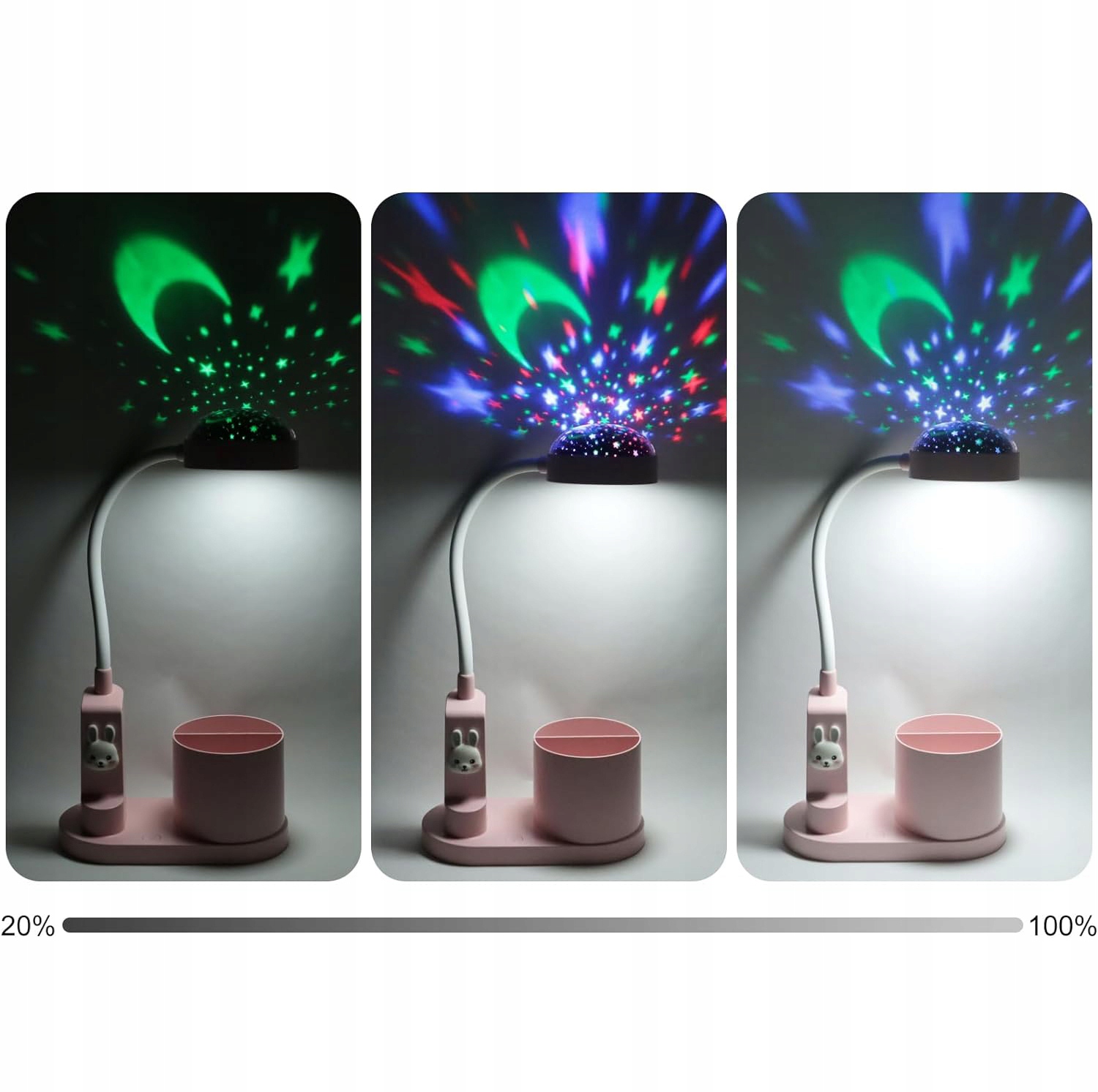 🐇🐇 Чудовий подарунок для дітей - Ефективна основа з тримачем для ручок, конструкція для зберігання різних канцелярських речей, таких як ручки чи гаджети тощо. Милий зайчик і елегантний дизайн роблять його ідеальним подарунком для дітей. Це корисна настільна лампа для дітей, а також проектор для дитячої кімнати.