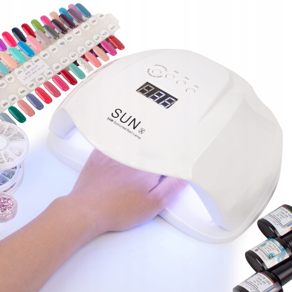 - Професійна та дуже якісна UV/LED лампа, виготовлена за сучасною технологією DUAL LED (365nm+405nm) з оптимальною потужністю 54W