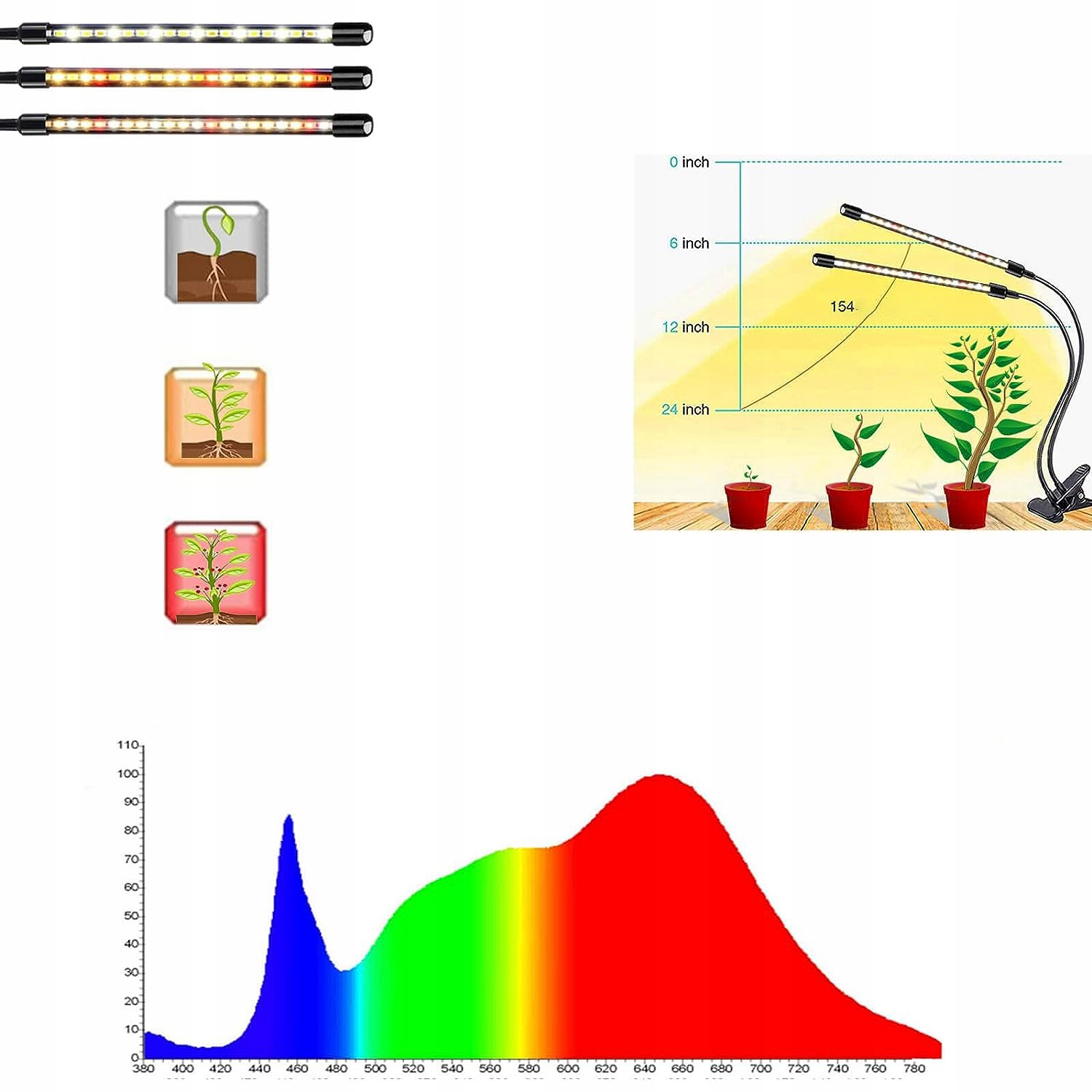 - Увесь спектр близький до природного сонячного світла, що робить його придатним для кімнатних рослин на всіх стадіях росту очі, цей світильник для вирощування, що кріпиться, має 40 світлодіодів.