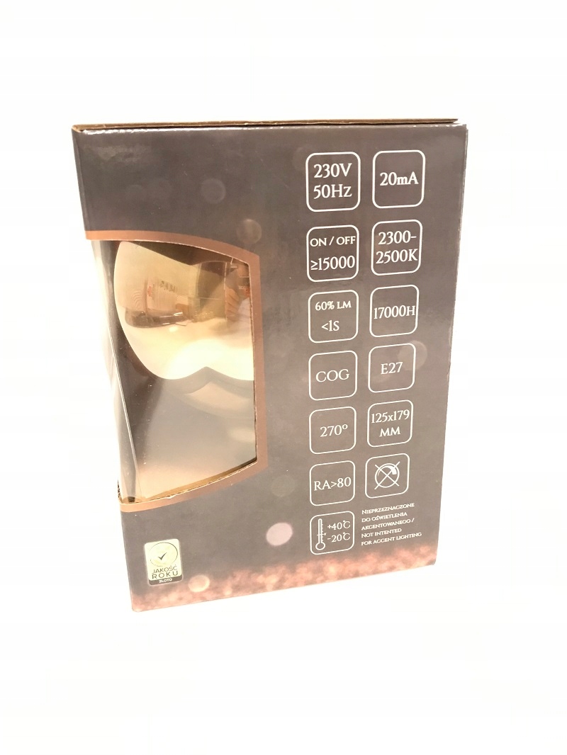 Оплачивая «Лампа E27 декоративная шариковая нить LED 2W RETRO», вы можете быть уверены, что данный товар из каталога «Источники света» будет доставлен из Польши и проверен на целостность. В цене товара, указанной на сайте, учтена доставка из Польши. Внимание!!! Товары для Евросоюза, согласно законодательству стран Евросоюза, могут отличаться упаковкой или наполнением.
