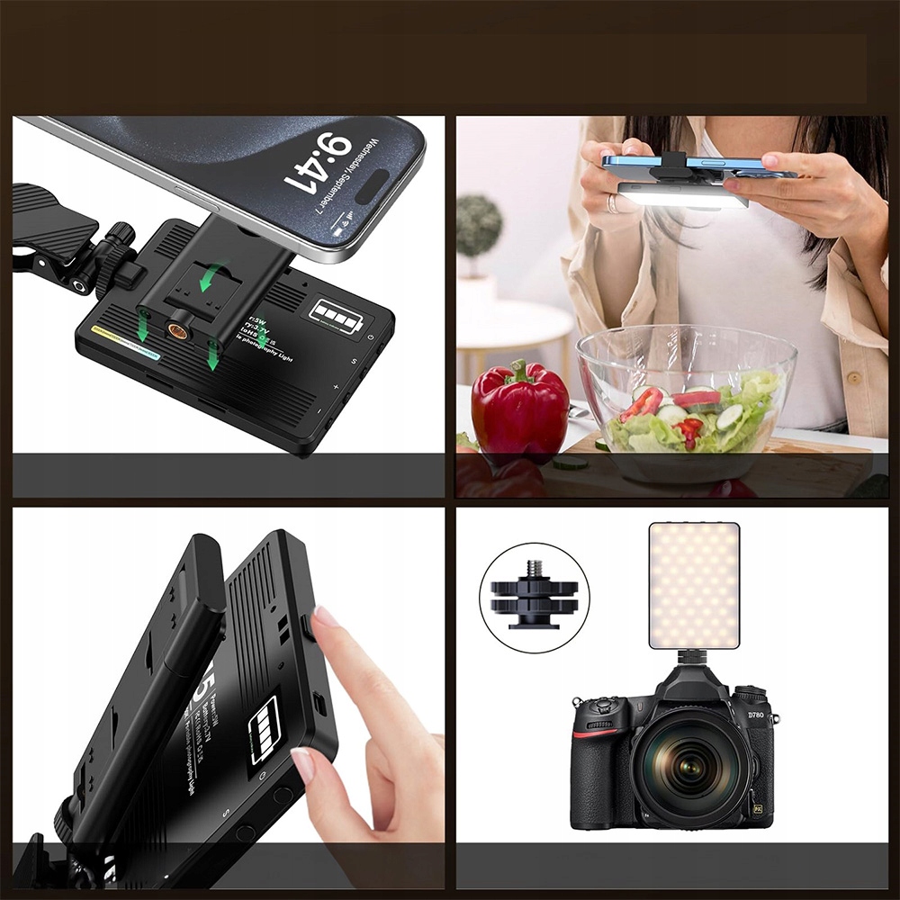 - - оснащений двома кліпами, передньою та задньою затискачем, ідеально сумісними з мобільними телефонами, планшетами, ноутбуками тощо. Стандартний гвинт 1/4 дюйма внизу підходить для камер та штативів. Кишенькові гроші, тож ви можете легко носити їх із собою, щоб забезпечити ідеальне освітлення для кожного пострілу. Ідеально підходить для прямої трансляції, селфі, макіяжу, фотографії, зустрічей, відеозаписів тощо.