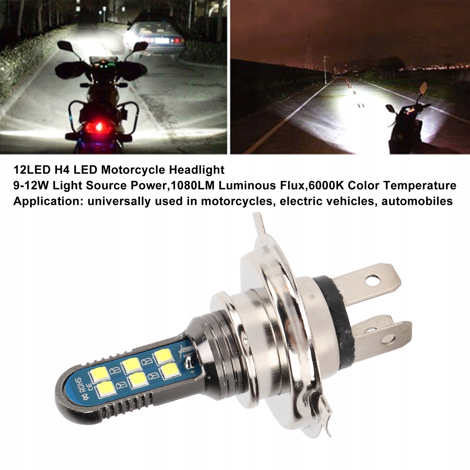 12LED H4 LED Headlight Motorcycle Electric Vehicle 3 Claws Motorcycle Front Lamp IP68 1080LM 6000K