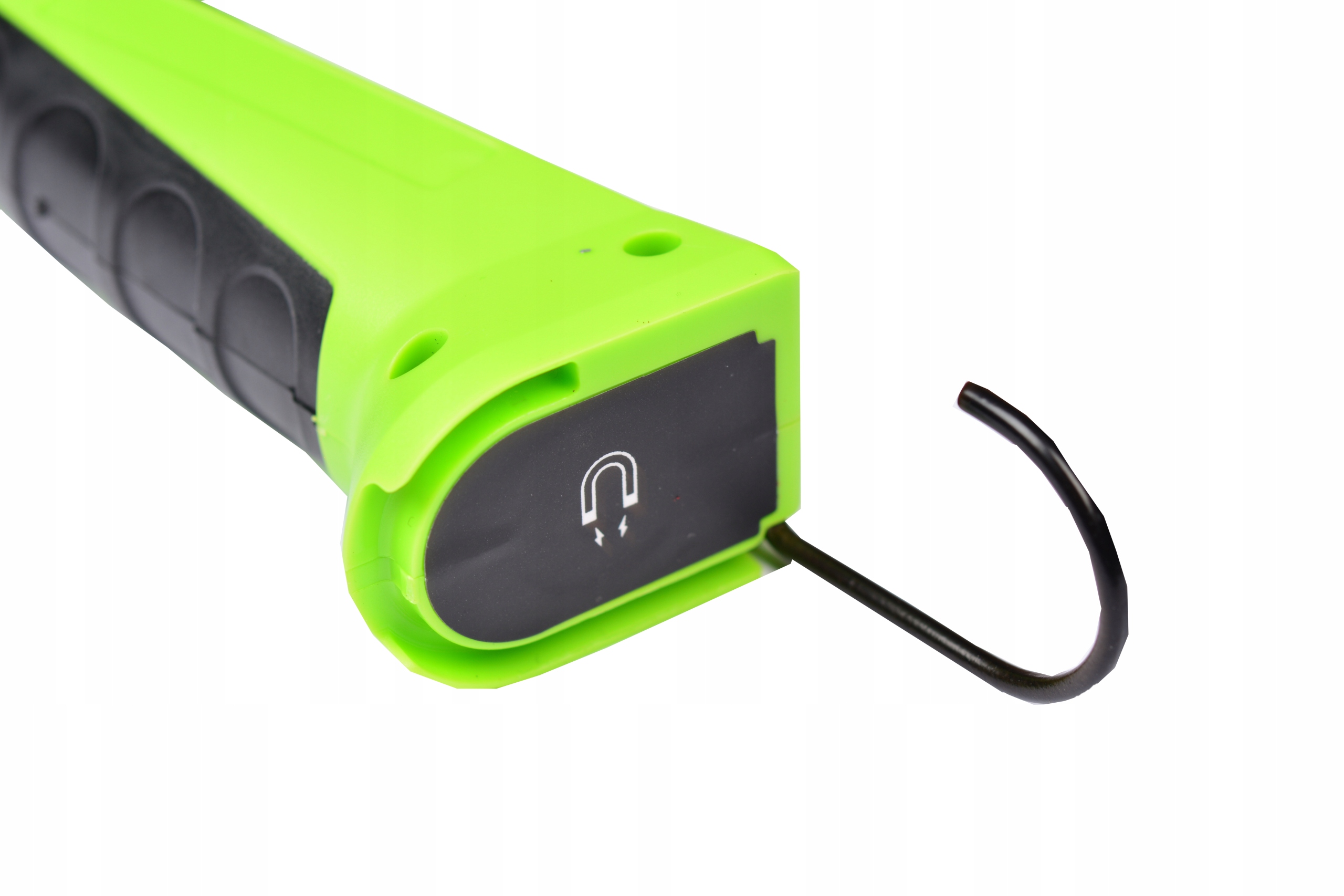 - Оснащений з міцним магнітним тримачем, що дозволяє кріпити лампу до металевих поверхонь, і зі зручним гачком