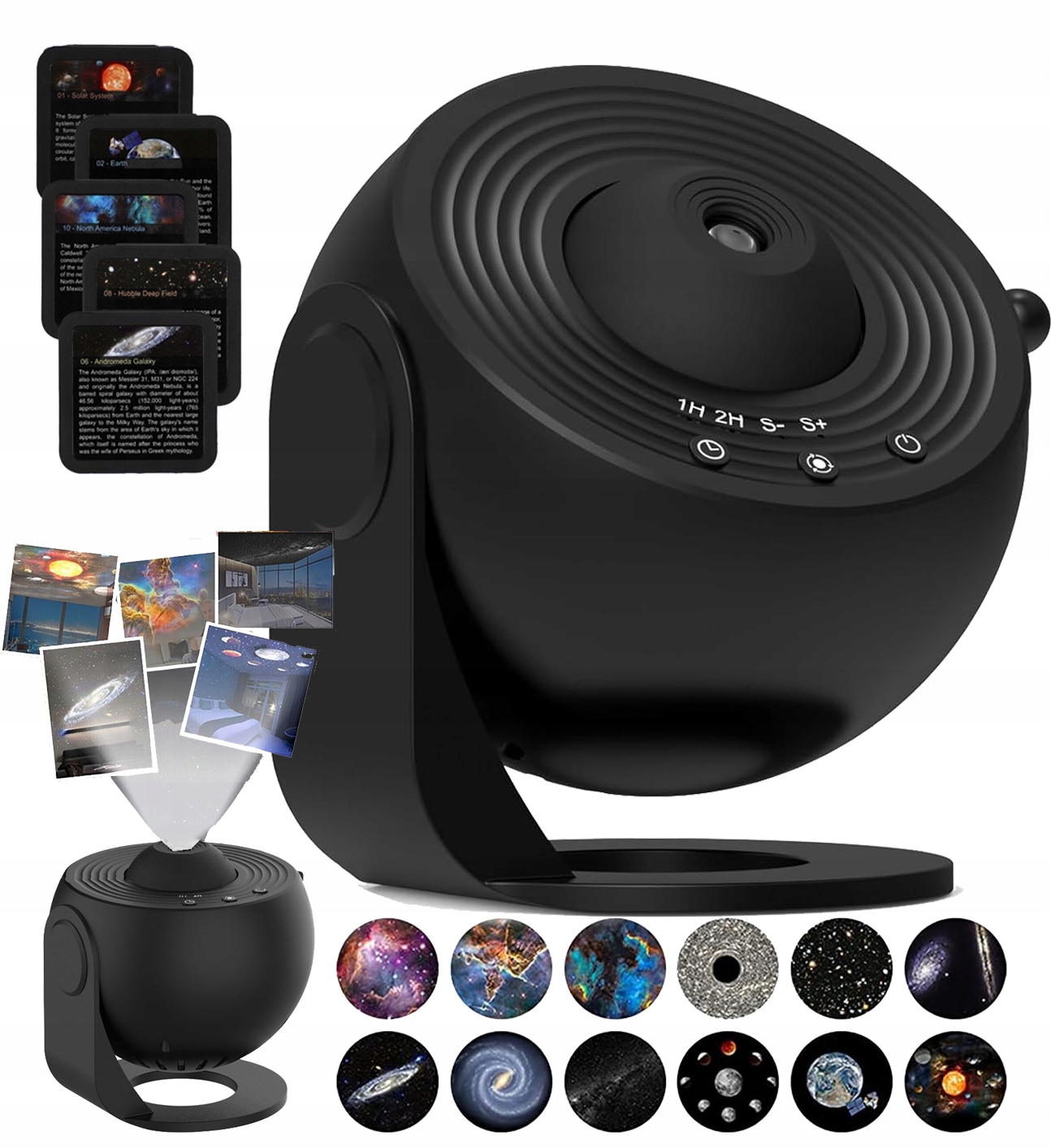 - 🔮- Безшумний двигун використовується для повільного обертання, імітуючи потік зоряних доріжок, зі швидкістю 12 хвилин за оберт і максимальний шум 30 децибел.