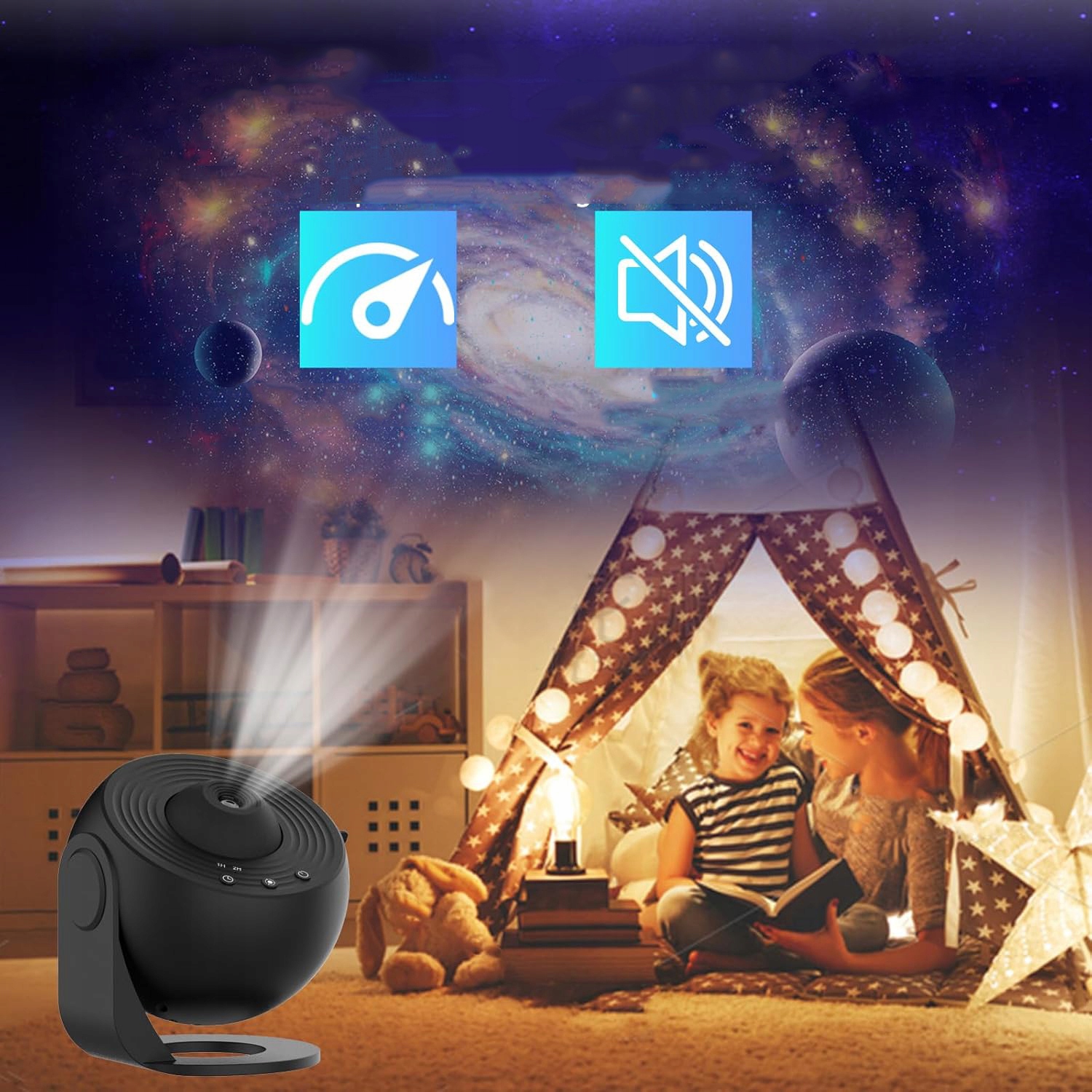 - Цей проектор Starlight працює безшумно, створюючи заспокійливе середовище для сну.