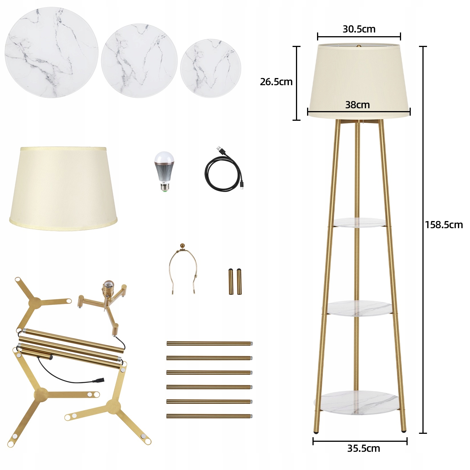 LAMPA STOJĄCA PODŁOGOWA TRÓJNÓG ZE STOLIKIEM ZŁOTY