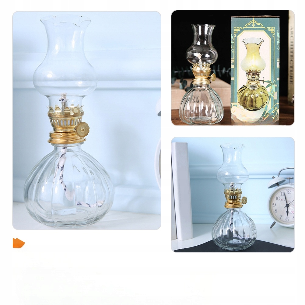 LAMPKA OLEJOWA VINTAGE Z DUŻĄ SZKLANĄ LATARNIĄ PRZECIWIATrowĄ