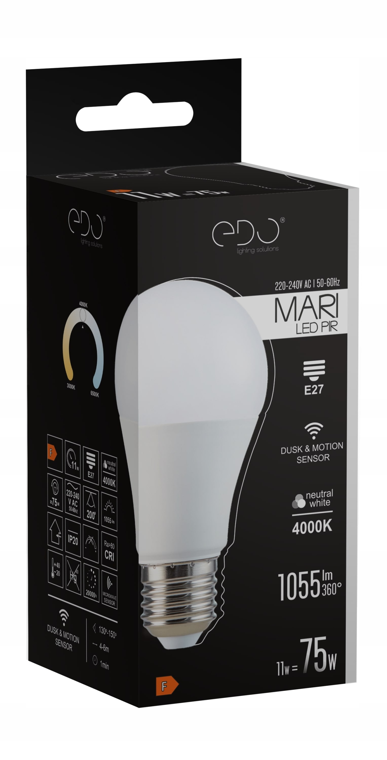 Сенсорна лампа MARI LED 11W NW з датчиком руху та сутінків, E27, 4000K, 1055lm, 220-240V EDO777592 EDO