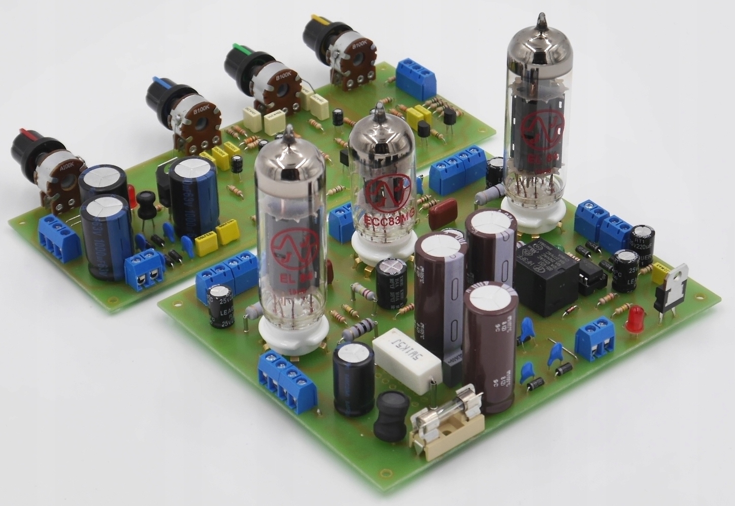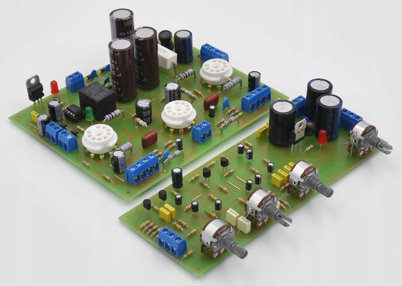 Предметом продажу є комплект з двох друкованих плат для побудови лампового підсилювача. Плати продаються без ламп і ручок потенціометрів, які видно на фото. Користувач вирішує, які з них використовувати. Є різні версії ламп і за різними цінами. Також є відмінність у звучанні цих трубок.