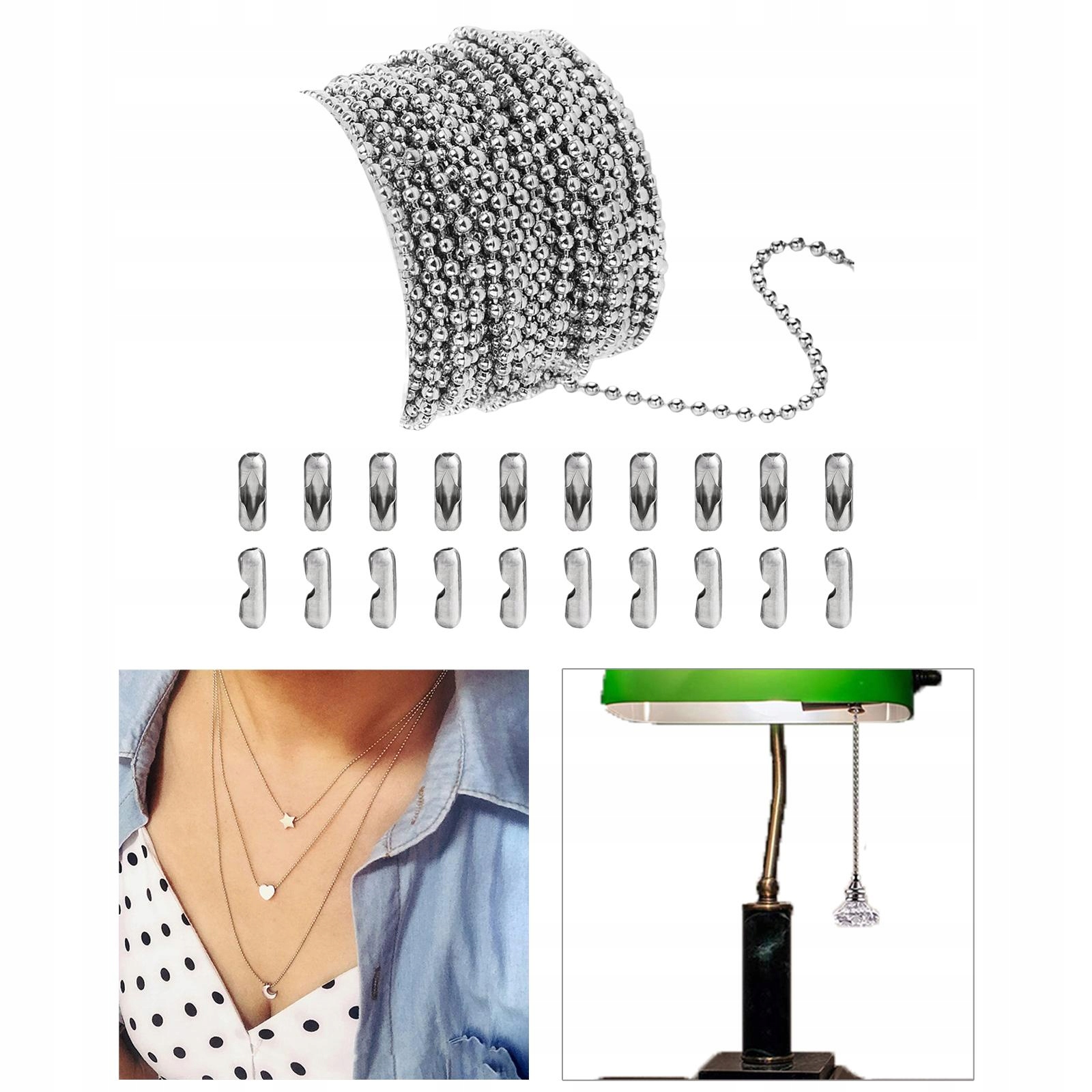 Упаковка містить: 32 фути/10 метрів сріблястий металевий ланцюг з намистинами в рулоні та 20 штук відповідних з'єднувачів.