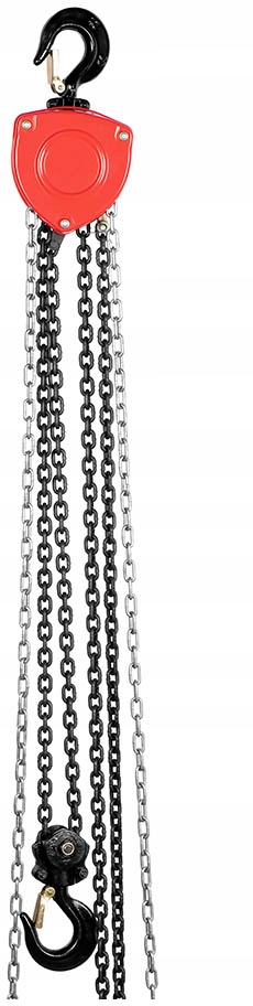 Міцна конструкція гарантує безпеку під час роботи. Корпус виготовлений з низьковуглецевої сталі, ланцюг із загартованої сталі, а гак на її кінці з вуглецевої сталі. Завдяки цьому ви можете піднімати важкі предмети без ризику посковзнутися або порвати ланцюг. Крім того, використовувалися оцинковані електронні гвинти та гайки.