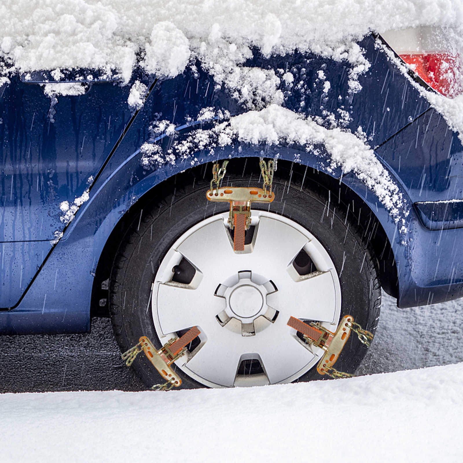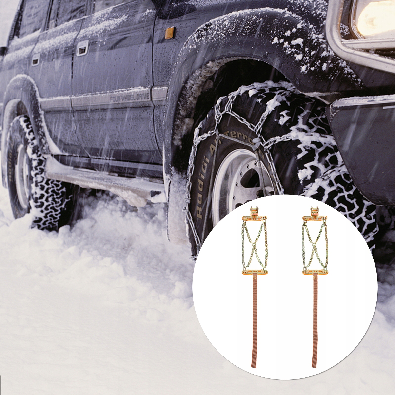 ✅Ланцюг протиковзання щільно прилягає до шин автомобіля, забезпечуючи безпеку водіння.