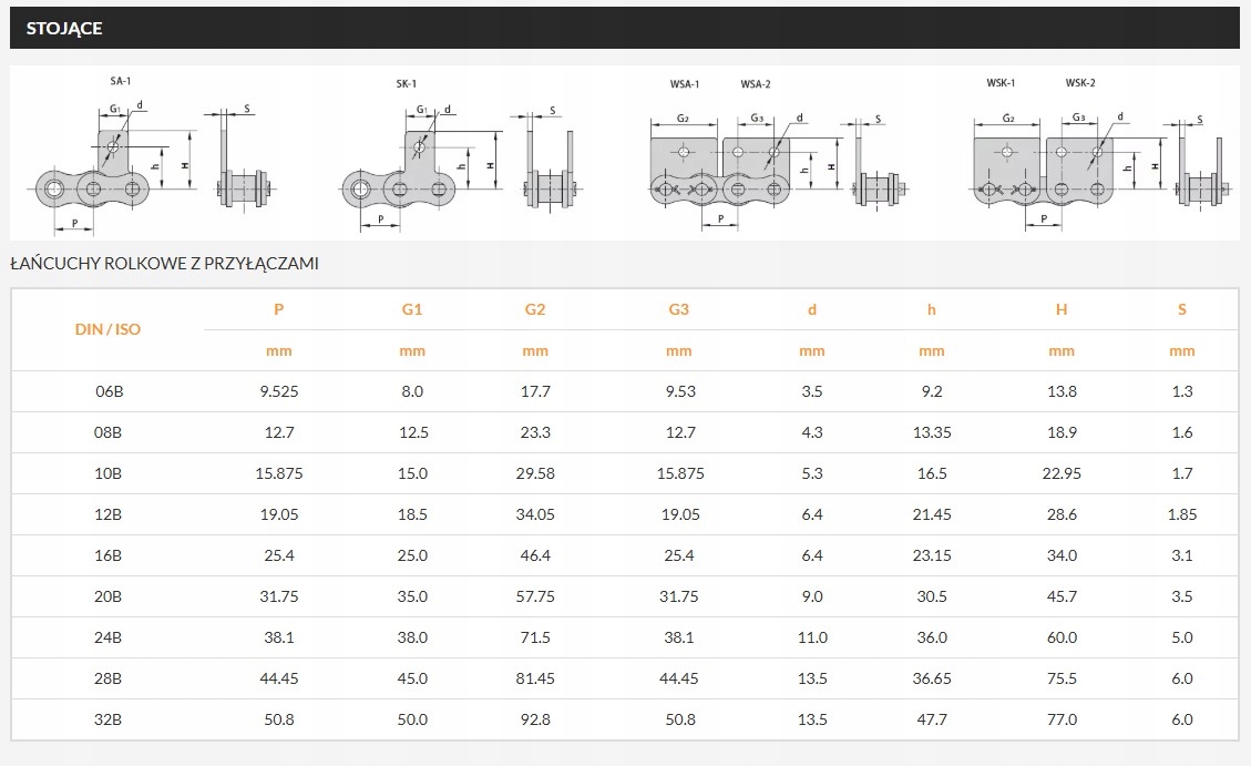 Ланцюг 08B-1 (1/2 дюйма) з підключенням (драйвер) WA2 - Ozdowski