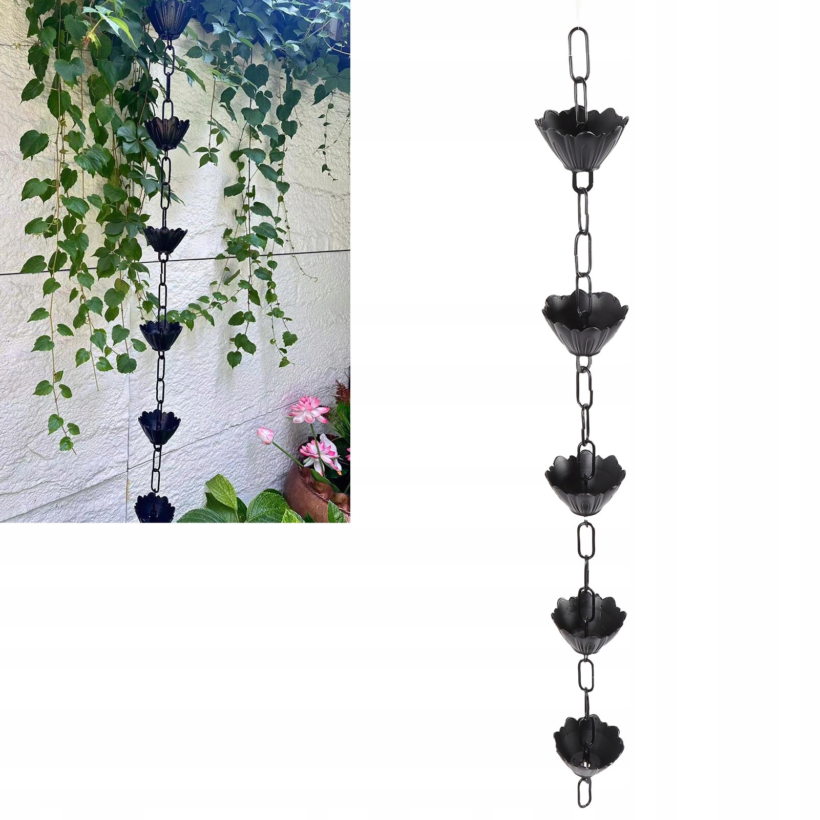 4. Ефективне відведення води: складно сконструйовані чашки для квітів дощового ланцюга ефективно відводять воду з ринви на землю або в контейнер. Ця здатність не тільки запобігає накопиченню води, але й дозволяє збирати дощову воду.