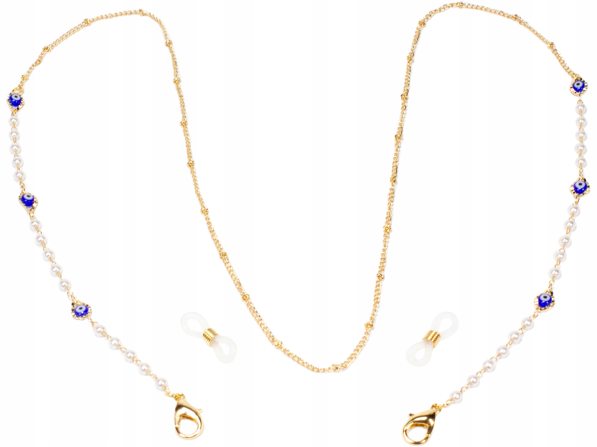 Наш ланцюжок для окулярів - це модний аксесуар, який додасть стилю та підкреслить ваш образ. Ланцюжок служить не лише як красива прикраса, але, перш за все, він забезпечує захист ваших окулярів, гумові затискачі на кінцях ланцюжка запобігають подряпинам дужок окулярів . Завдяки застібкам на обох кінцях ланцюжка його також можна використовувати для масок. Прикрашений красивими перламиі блакитними люверсами на обох кінцях ланцюжка.
