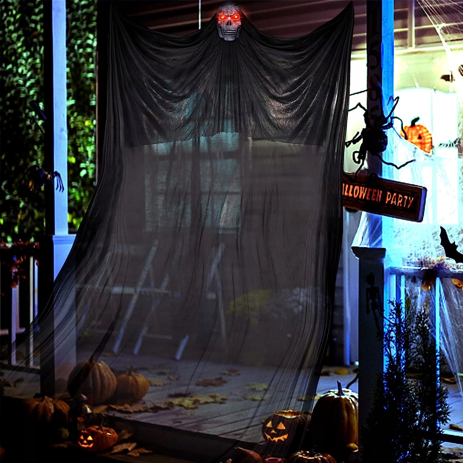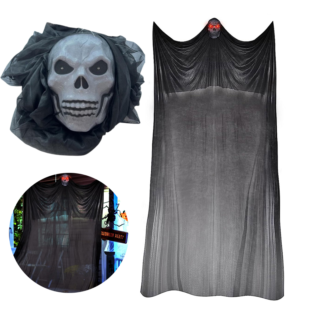 Завдяки довгому тюль Маска-скелет дозволить привидам літати опівночі, коли здіймається вітер, створюючи моторошну атмосферу та даруючи вашим сусідам незабутні враження від Хелловіну. Вони є кращим вибором для прикраси та відлякування гостей. Чудовий реквізит для Хелловіну!